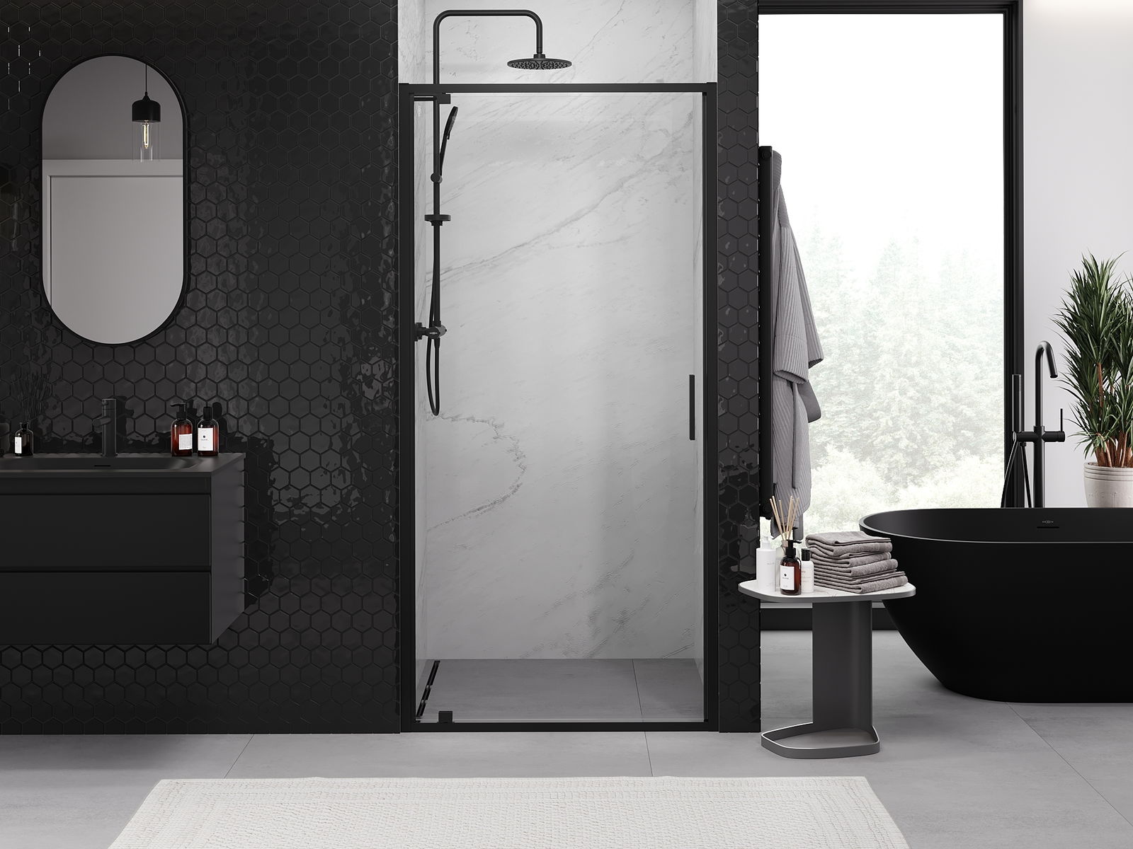 Mexen Exo ușă de duș batantă 75 cm, transparentă, neagră - 8181-075-000-70-00
