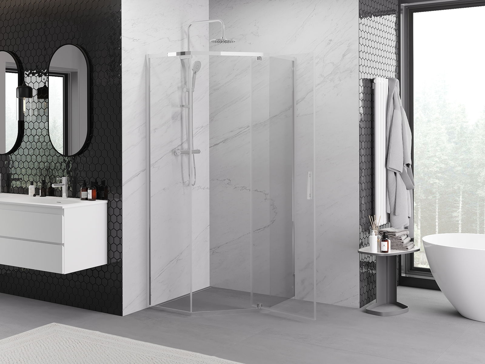 Mexen Exo cabină de duș pentagonală batantă 90 x 90 cm, transparent, crom - 812-090-090-01-00