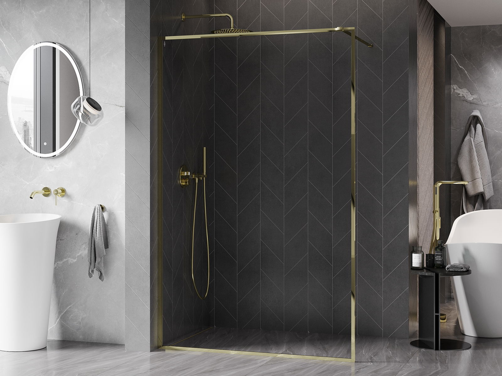 Mexen Kioto-F perete de duș Walk-in cu cadru 55 x 202 cm, transparent 8 mm, auriu - 800-055-104-50-00