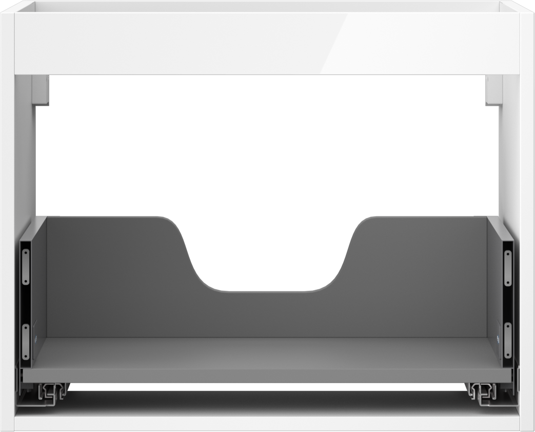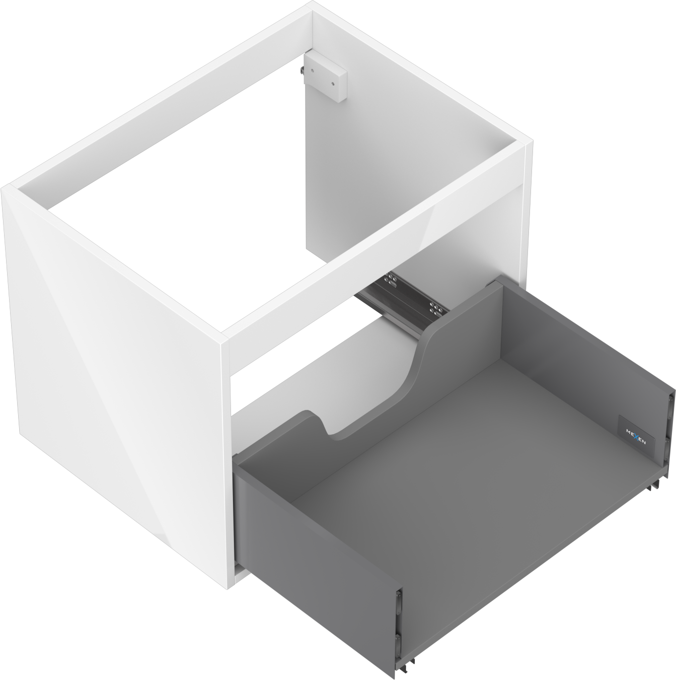 Decupajul în sertar este proiectat în așa fel încât să acomodeze sifonul, care este esențial în instalațiile de lavoare. Datorită acestui fapt, mobila poate fi montată complet funcțională, fără a fi necesară renunțarea la spațiul din sertar în favoarea instalației.