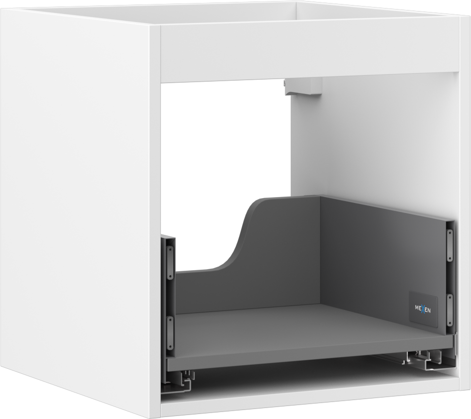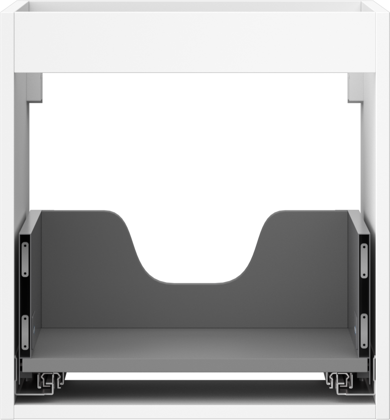 Decupajul în sertar este proiectat în așa fel încât să acomodeze sifonul, care este esențial în instalațiile de lavoare. Datorită acestui fapt, mobila poate fi montată complet funcțională, fără a fi necesară renunțarea la spațiul din sertar în favoarea instalației.