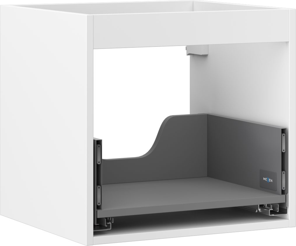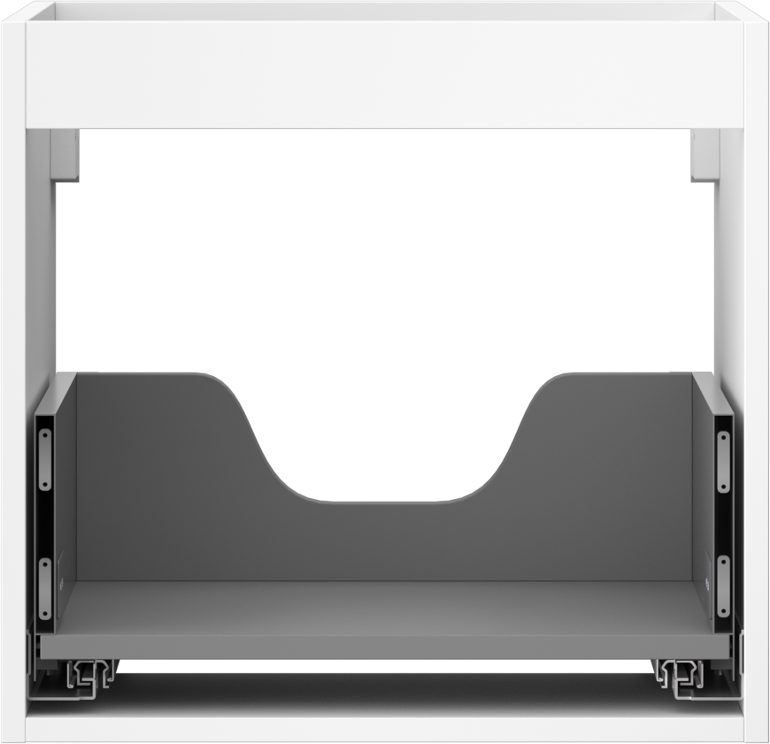 Decupajul în sertar este proiectat în așa fel încât să acomodeze sifonul, care este esențial în instalațiile de lavoare. Datorită acestui fapt, mobila poate fi montată complet funcțională, fără a fi necesară renunțarea la spațiul din sertar în favoarea instalației.