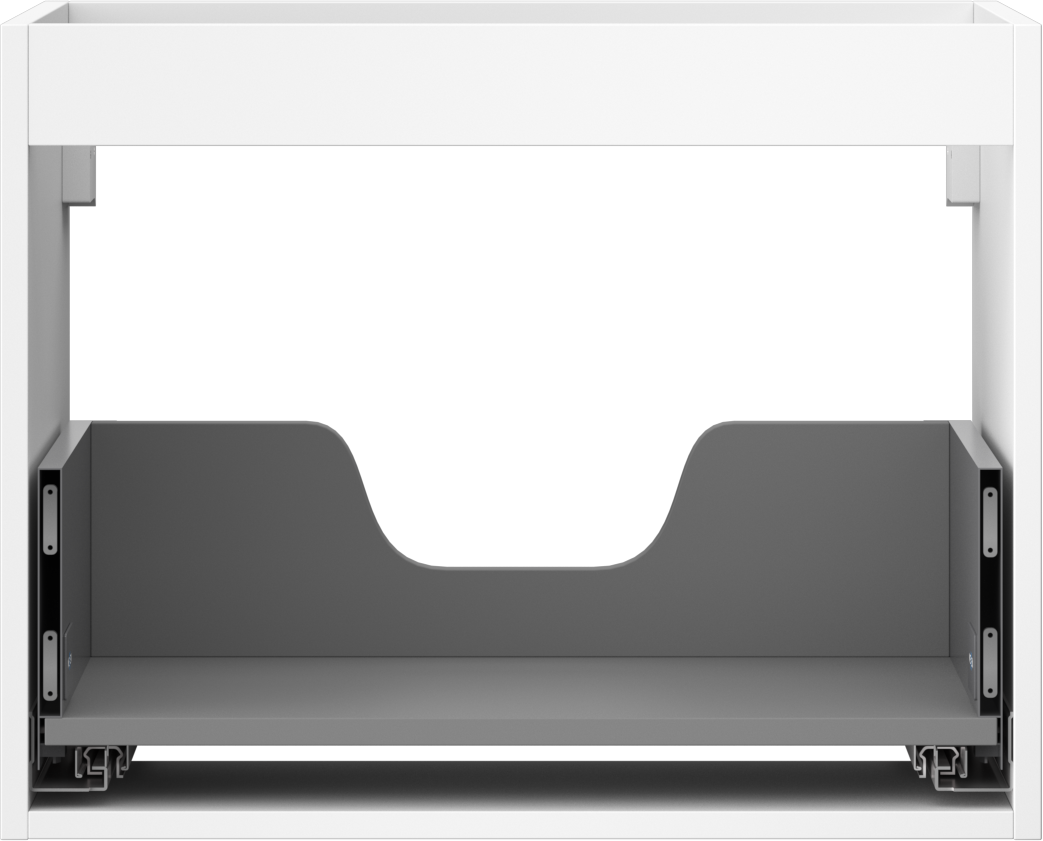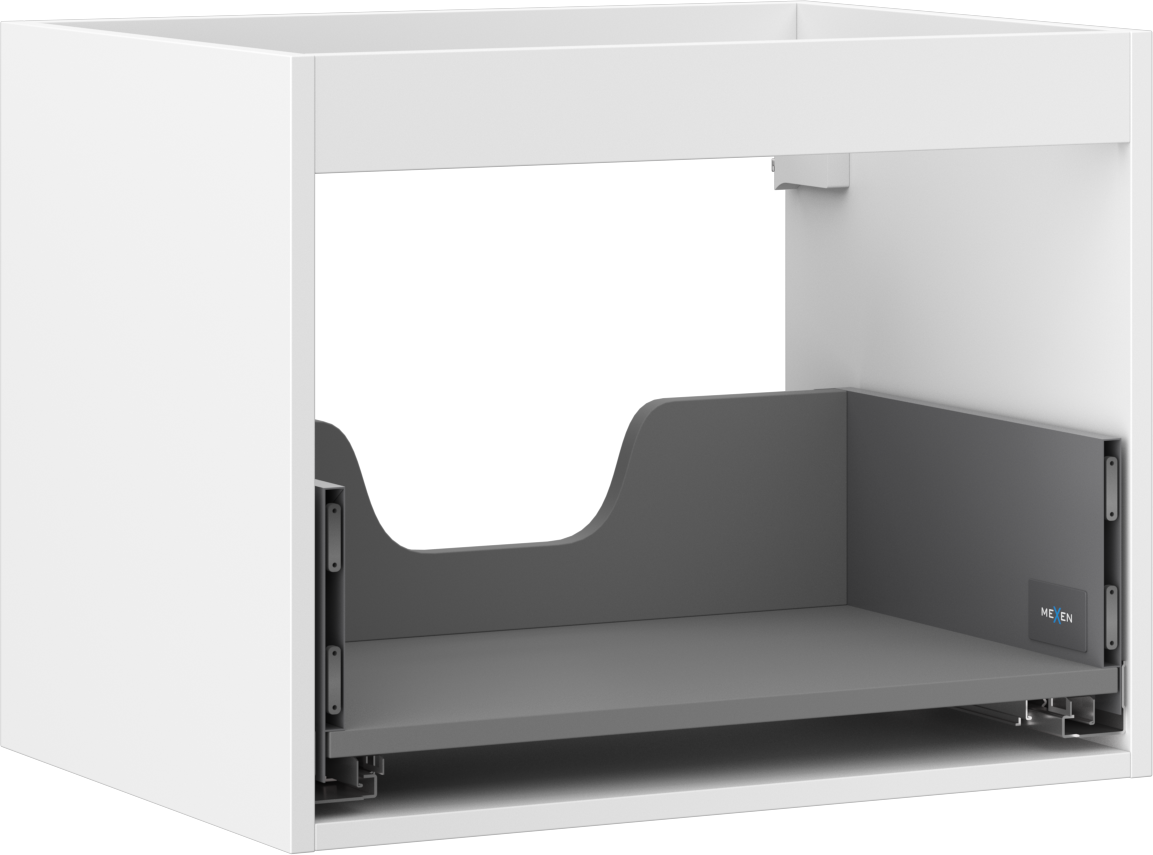 Decupajul în sertar este proiectat în așa fel încât să acomodeze sifonul, care este esențial în instalațiile de lavoare. Datorită acestui fapt, mobila poate fi montată complet funcțională, fără a fi necesară renunțarea la spațiul din sertar în favoarea instalației.