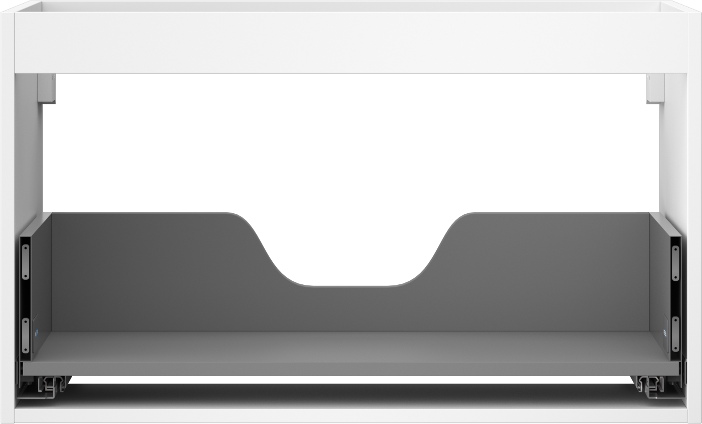 Decupajul în sertar este proiectat în așa fel încât să acomodeze sifonul, care este esențial în instalațiile de lavoare. Datorită acestui fapt, mobila poate fi montată complet funcțională, fără a fi necesară renunțarea la spațiul din sertar în favoarea instalației.