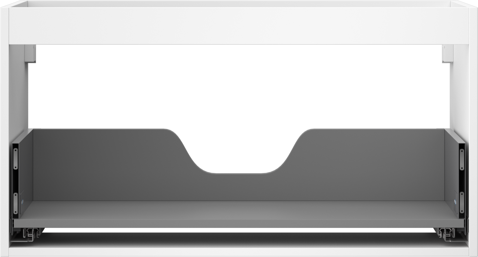 Decupajul în sertar este proiectat în așa fel încât să acomodeze sifonul, care este esențial în instalațiile de lavoare. Datorită acestui fapt, mobila poate fi montată complet funcțională, fără a fi necesară renunțarea la spațiul din sertar în favoarea instalației.