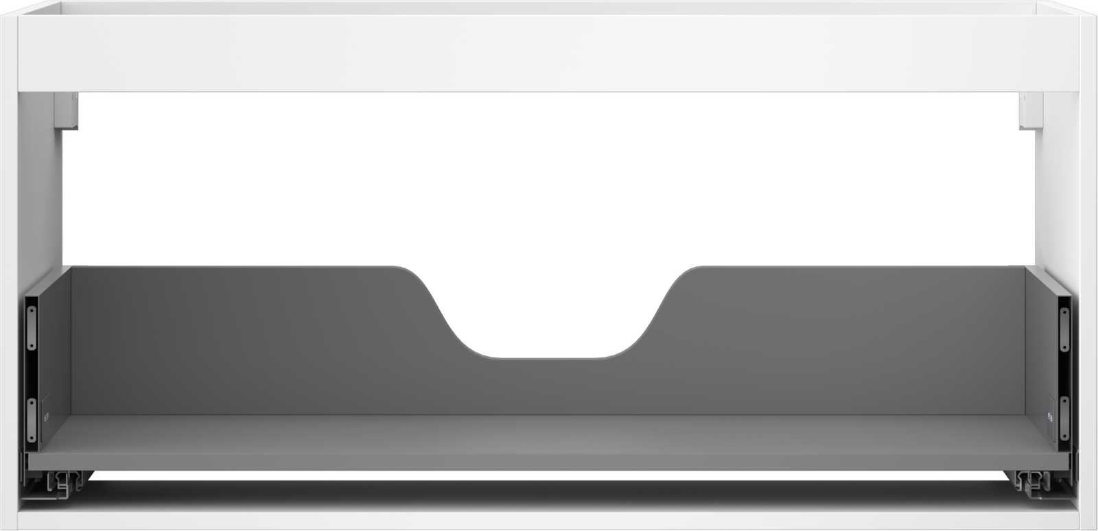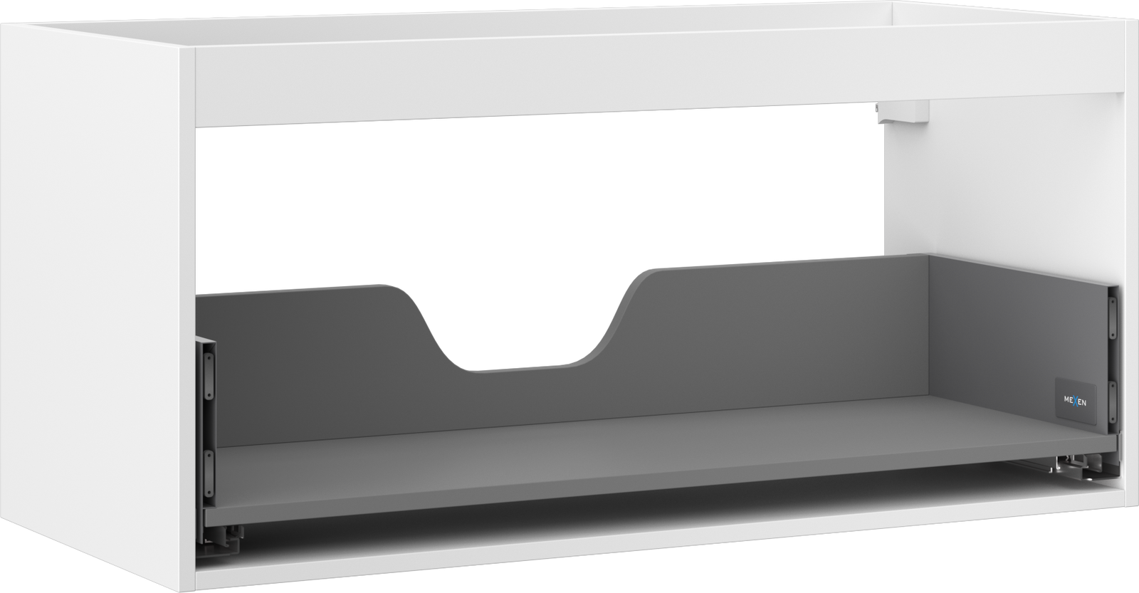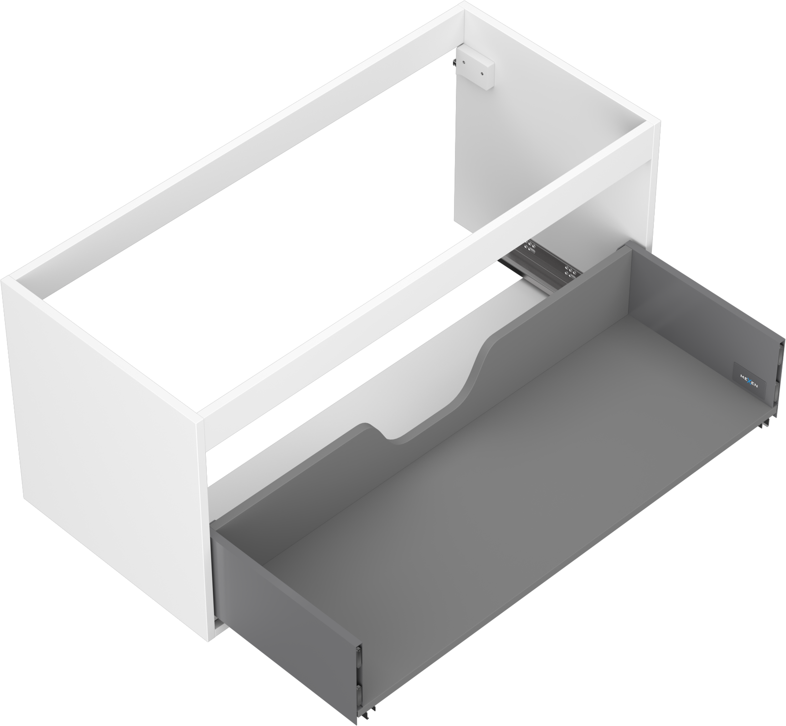 Decupajul în sertar este proiectat în așa fel încât să acomodeze sifonul, care este esențial în instalațiile de lavoare. Datorită acestui fapt, mobila poate fi montată complet funcțională, fără a fi necesară renunțarea la spațiul din sertar în favoarea instalației.