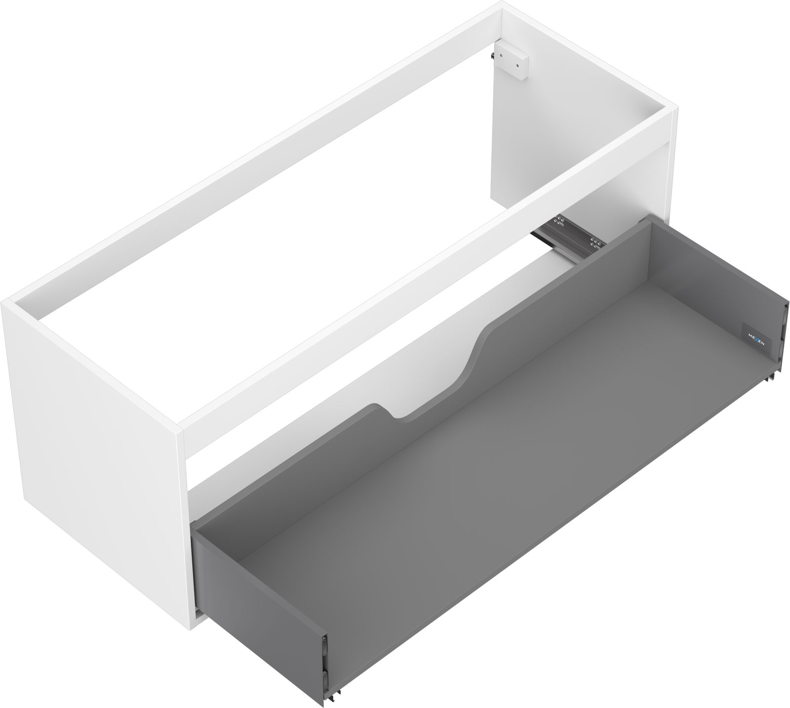 Decupajul în sertar este proiectat în așa fel încât să acomodeze sifonul, care este esențial în instalațiile de lavoare. Datorită acestui fapt, mobila poate fi montată complet funcțională, fără a fi necesară renunțarea la spațiul din sertar în favoarea instalației.