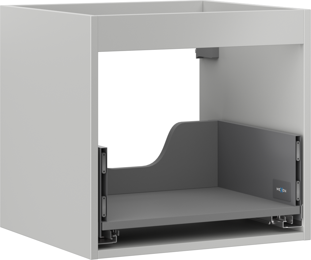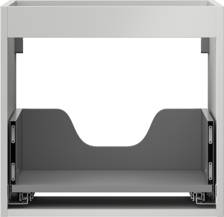 Decupajul în sertar este proiectat în așa fel încât să acomodeze sifonul, care este esențial în instalațiile de lavoare. Datorită acestui fapt, mobila poate fi montată complet funcțională, fără a fi necesară renunțarea la spațiul din sertar în favoarea instalației.