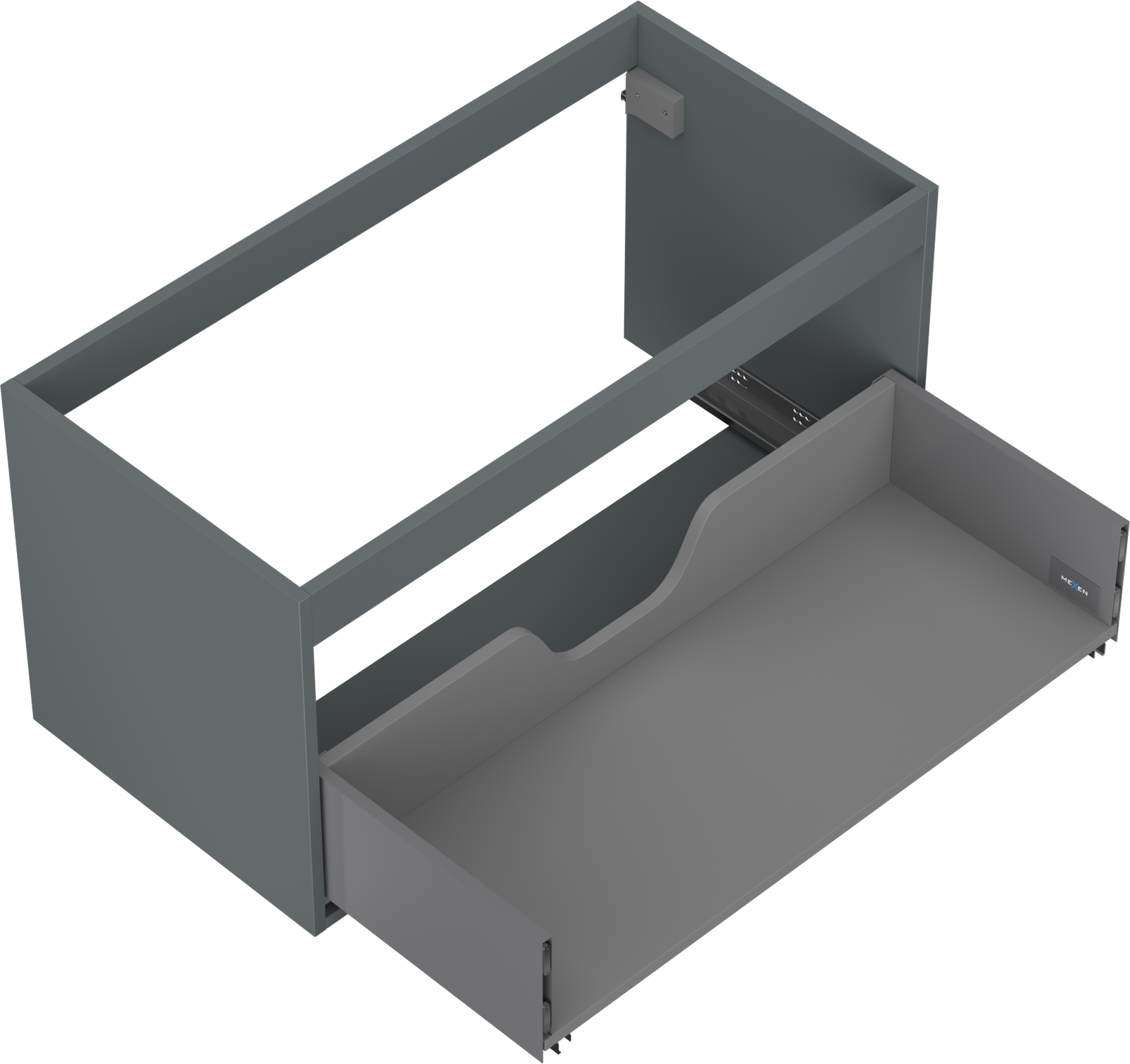 Decupajul în sertar este proiectat în așa fel încât să acomodeze sifonul, care este esențial în instalațiile de lavoare. Datorită acestui fapt, mobila poate fi montată complet funcțională, fără a fi necesară renunțarea la spațiul din sertar în favoarea instalației.