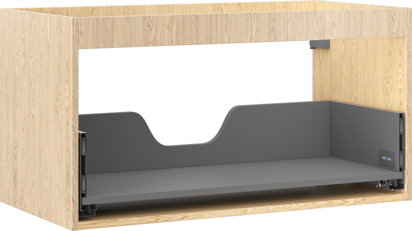 Decupajul în sertar este proiectat în așa fel încât să acomodeze sifonul, care este esențial în instalațiile de lavoare. Datorită acestui fapt, mobila poate fi montată complet funcțională, fără a fi necesară renunțarea la spațiul din sertar în favoarea instalației.