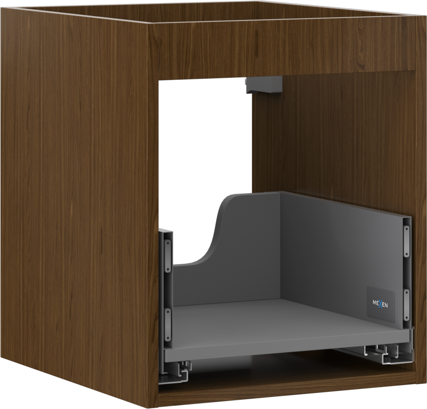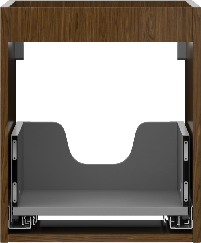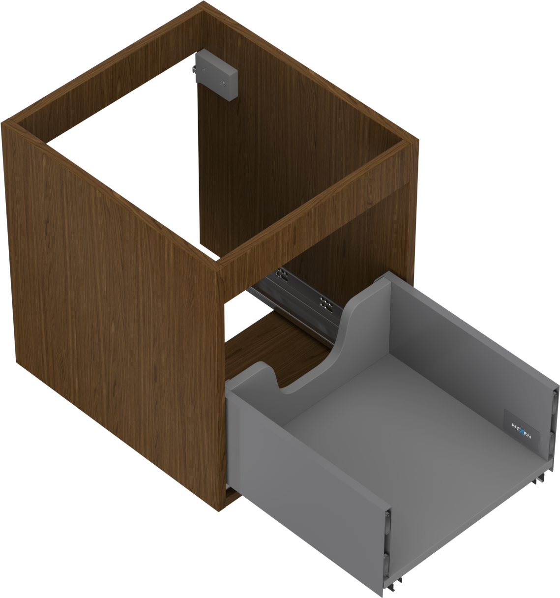 Decupajul în sertar este proiectat în așa fel încât să acomodeze sifonul, care este esențial în instalațiile de lavoare. Datorită acestui fapt, mobila poate fi montată complet funcțională, fără a fi necesară renunțarea la spațiul din sertar în favoarea instalației.