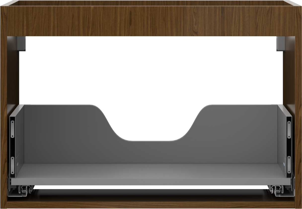 Decupajul în sertar este proiectat în așa fel încât să acomodeze sifonul, care este esențial în instalațiile de lavoare. Datorită acestui fapt, mobila poate fi montată complet funcțională, fără a fi necesară renunțarea la spațiul din sertar în favoarea instalației.