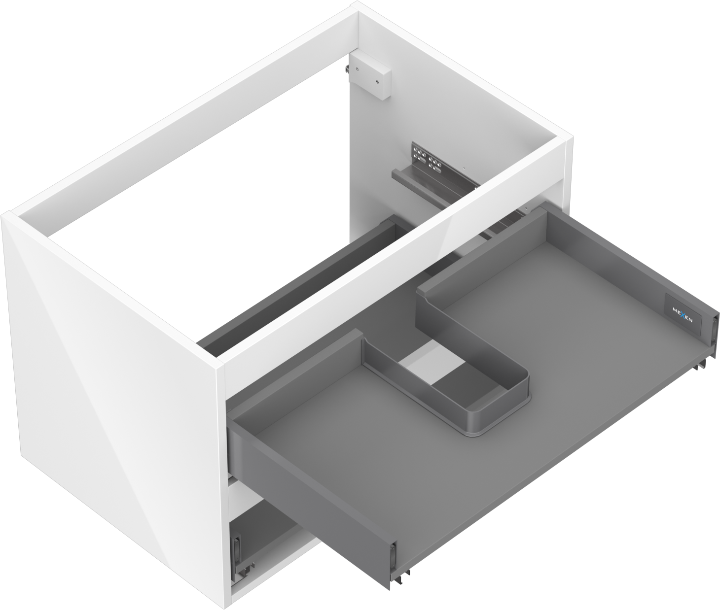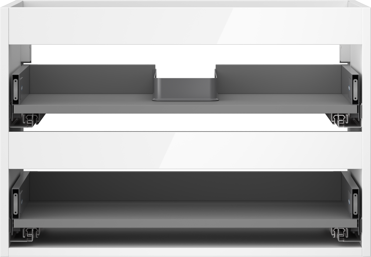 Decupajul în sertar este proiectat în așa fel încât să acomodeze sifonul, care este esențial în instalațiile de lavoare. Datorită acestui fapt, mobila poate fi montată complet funcțională, fără a fi necesară renunțarea la spațiul din sertar în favoarea instalației.