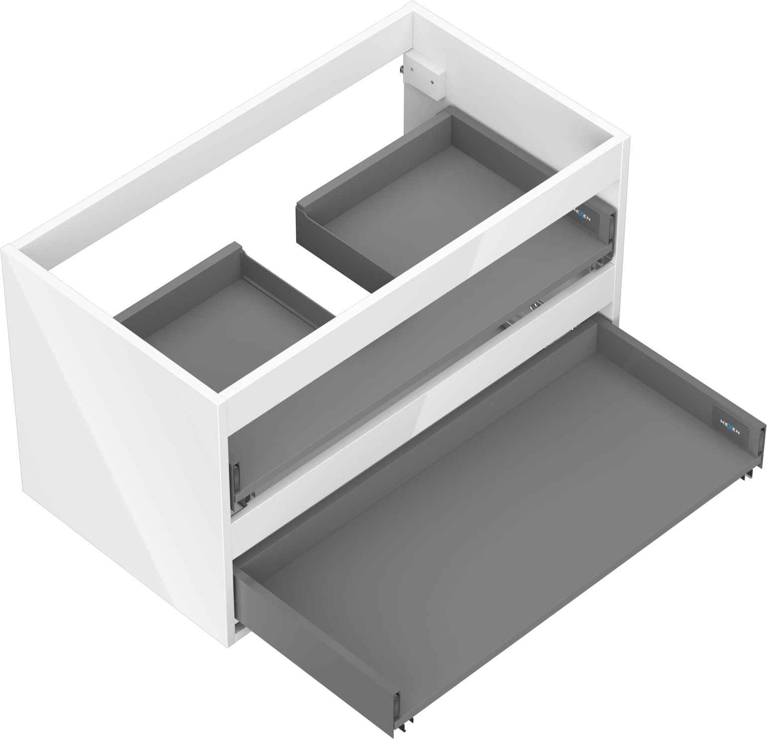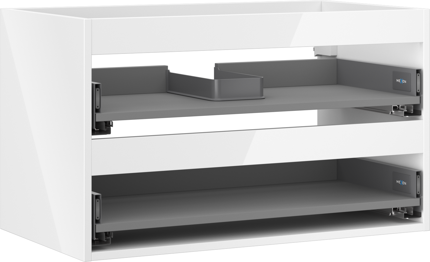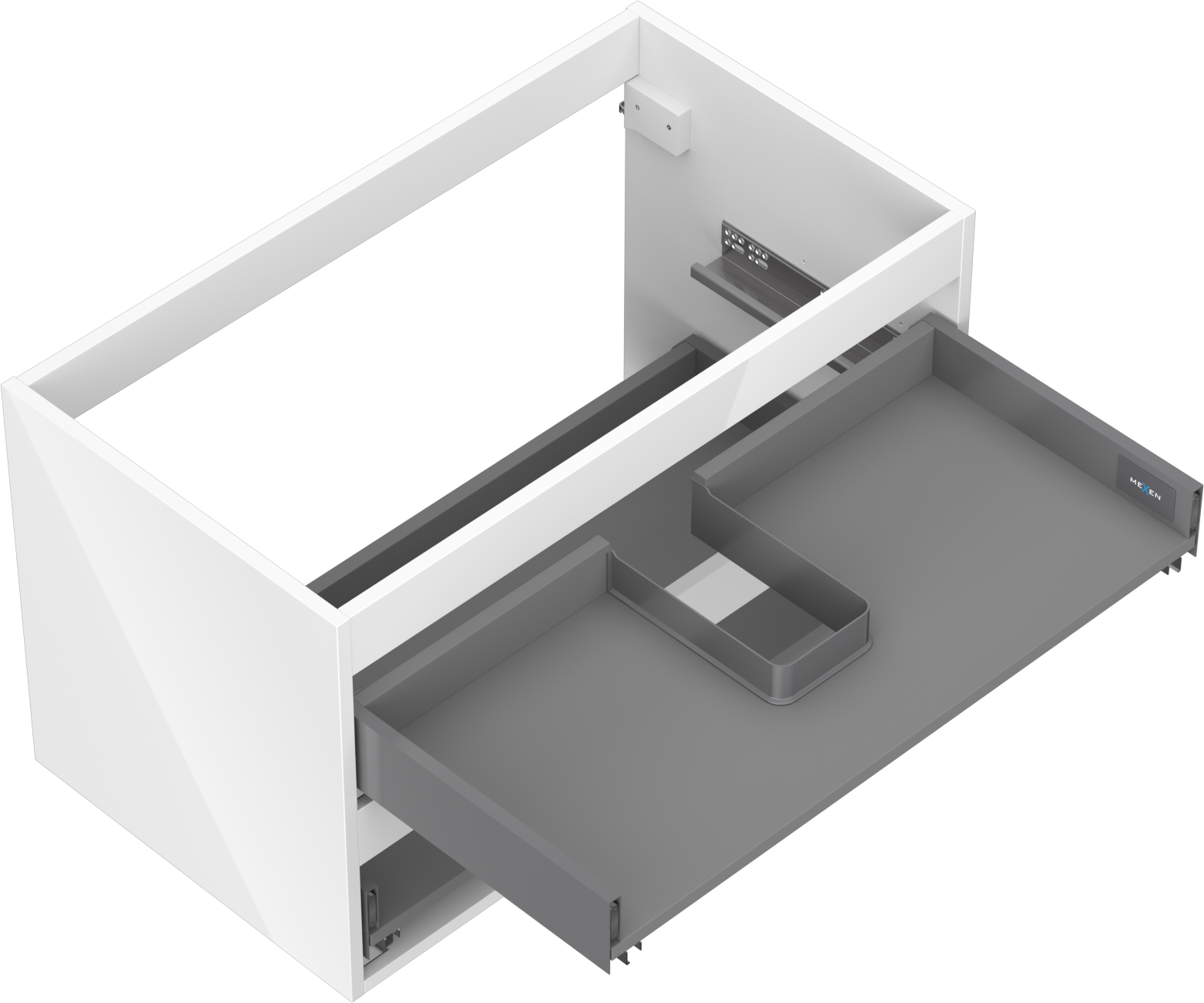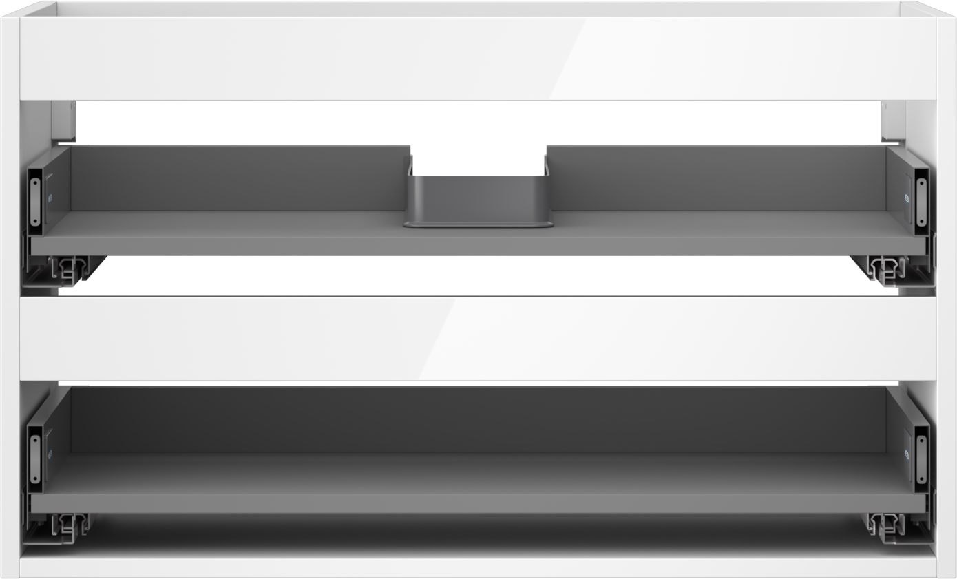 Decupajul în sertar este proiectat în așa fel încât să acomodeze sifonul, care este esențial în instalațiile de lavoare. Datorită acestui fapt, mobila poate fi montată complet funcțională, fără a fi necesară renunțarea la spațiul din sertar în favoarea instalației.