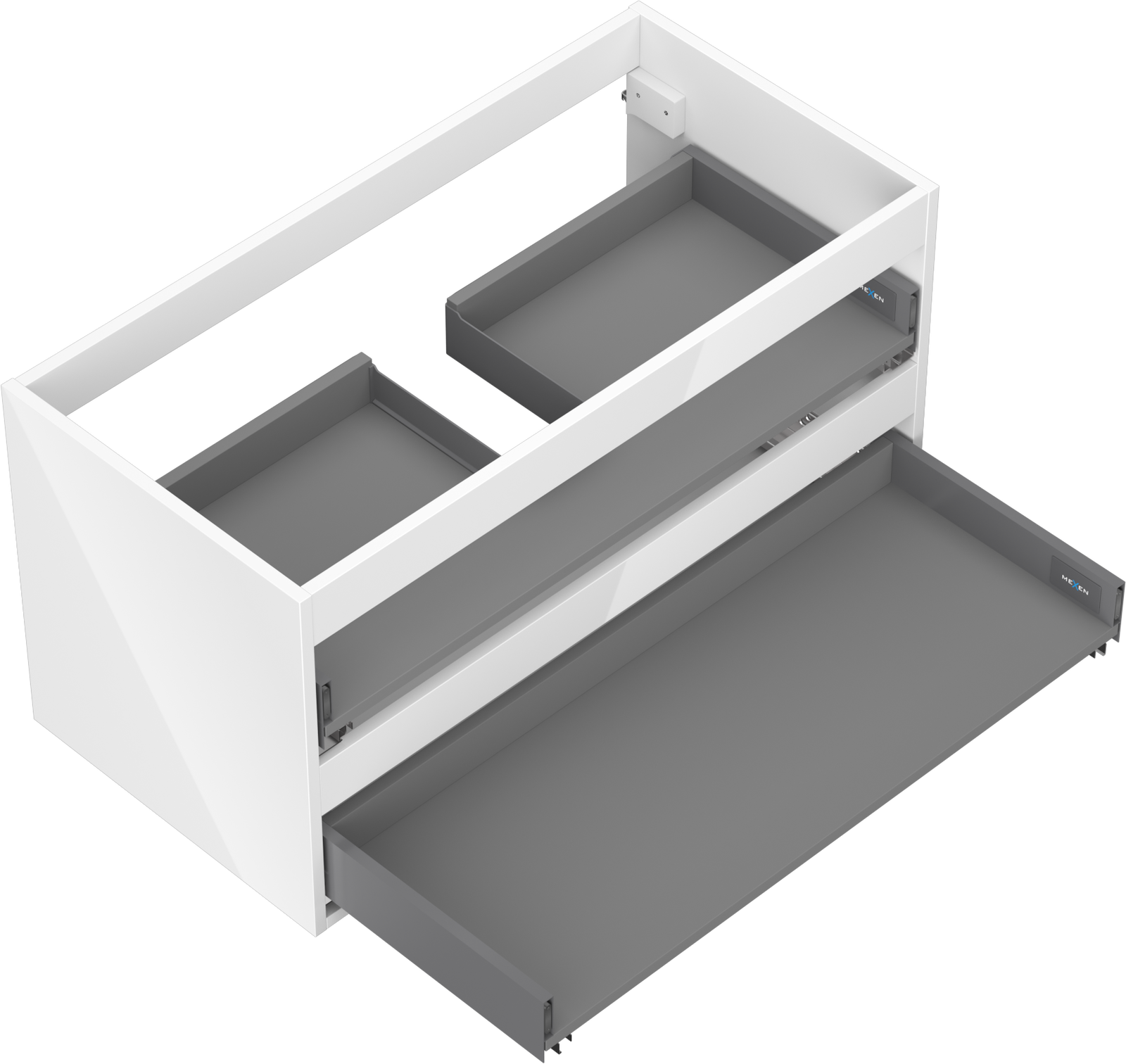 Decupajul în sertar este proiectat în așa fel încât să acomodeze sifonul, care este esențial în instalațiile de lavoare. Datorită acestui fapt, mobila poate fi montată complet funcțională, fără a fi necesară renunțarea la spațiul din sertar în favoarea instalației.