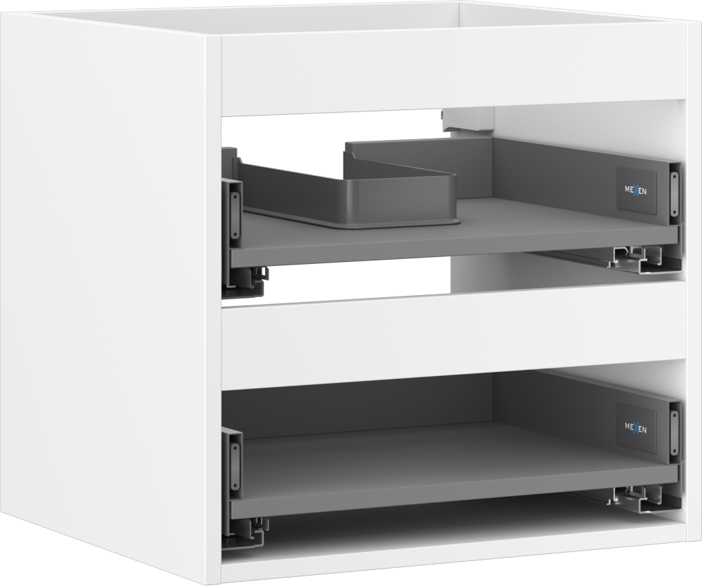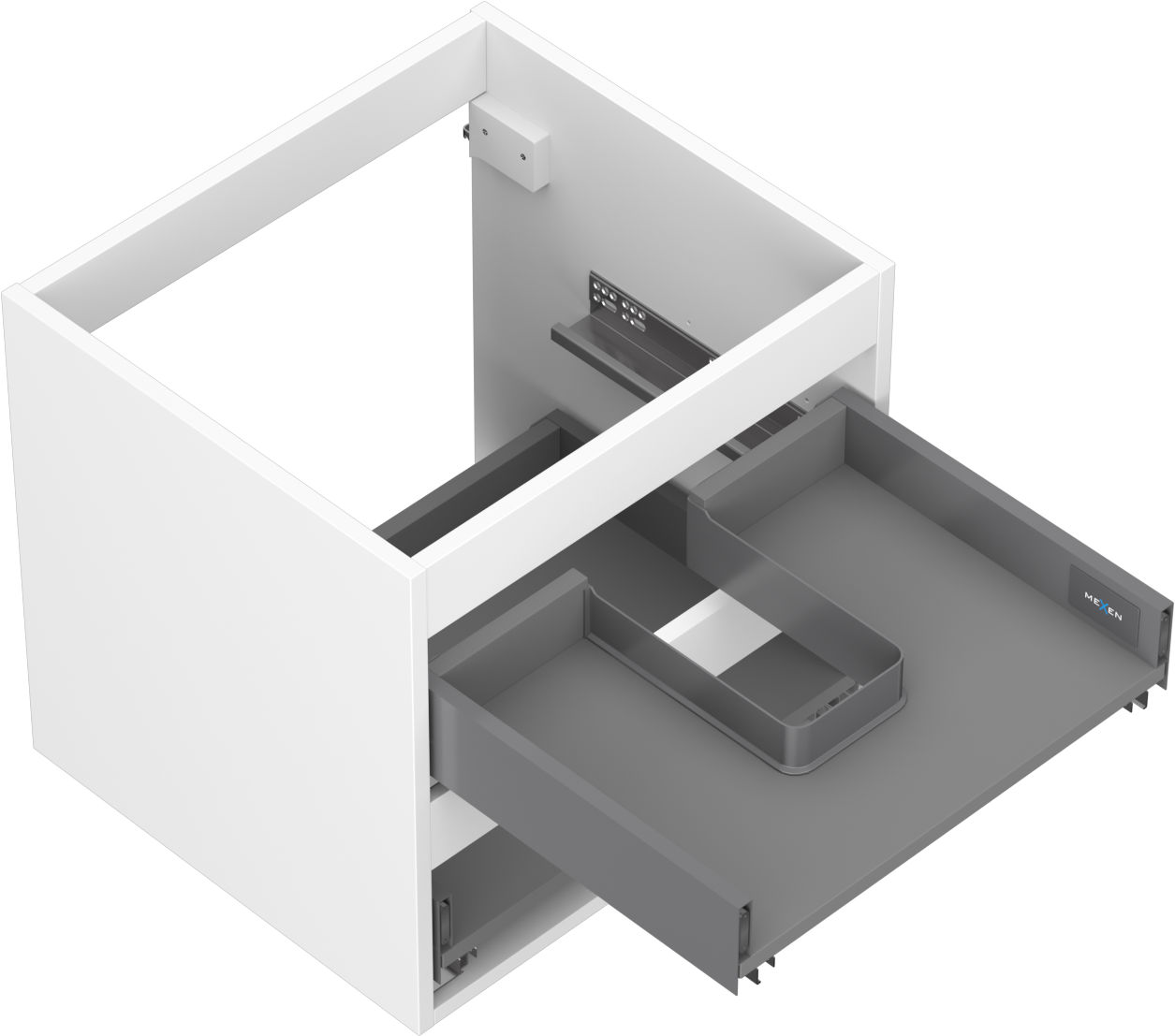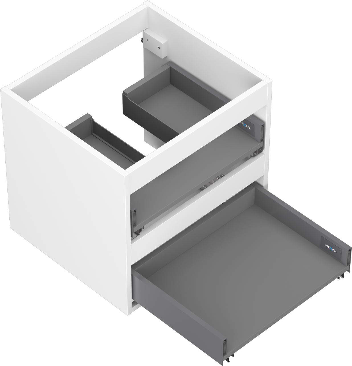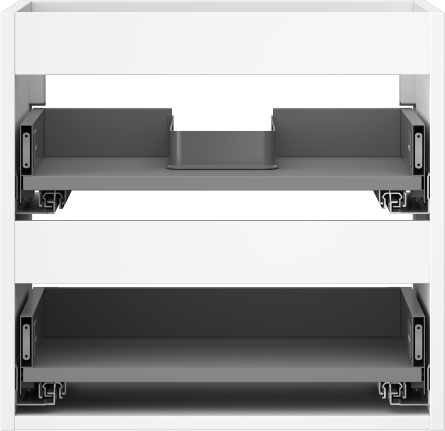 Decupajul în sertar este proiectat în așa fel încât să acomodeze sifonul, care este esențial în instalațiile de lavoare. Datorită acestui fapt, mobila poate fi montată complet funcțională, fără a fi necesară renunțarea la spațiul din sertar în favoarea instalației.