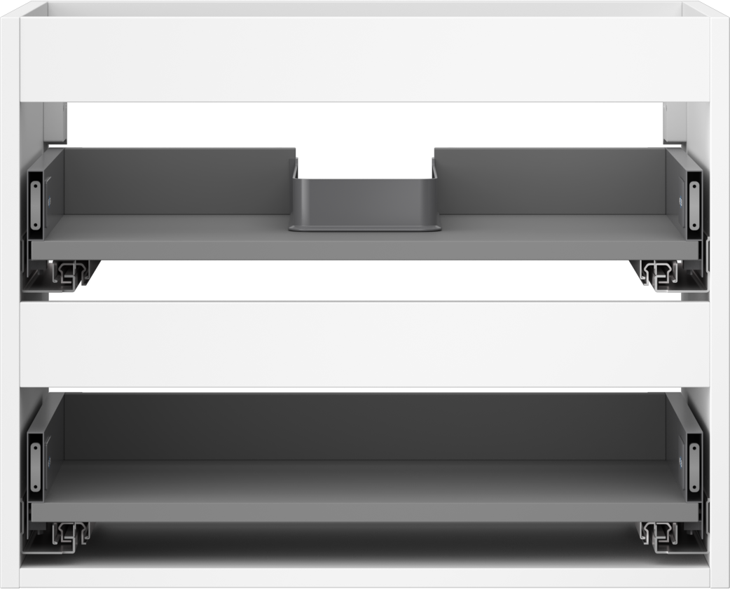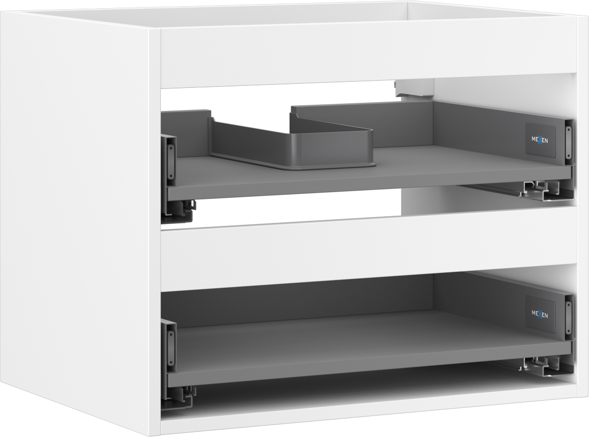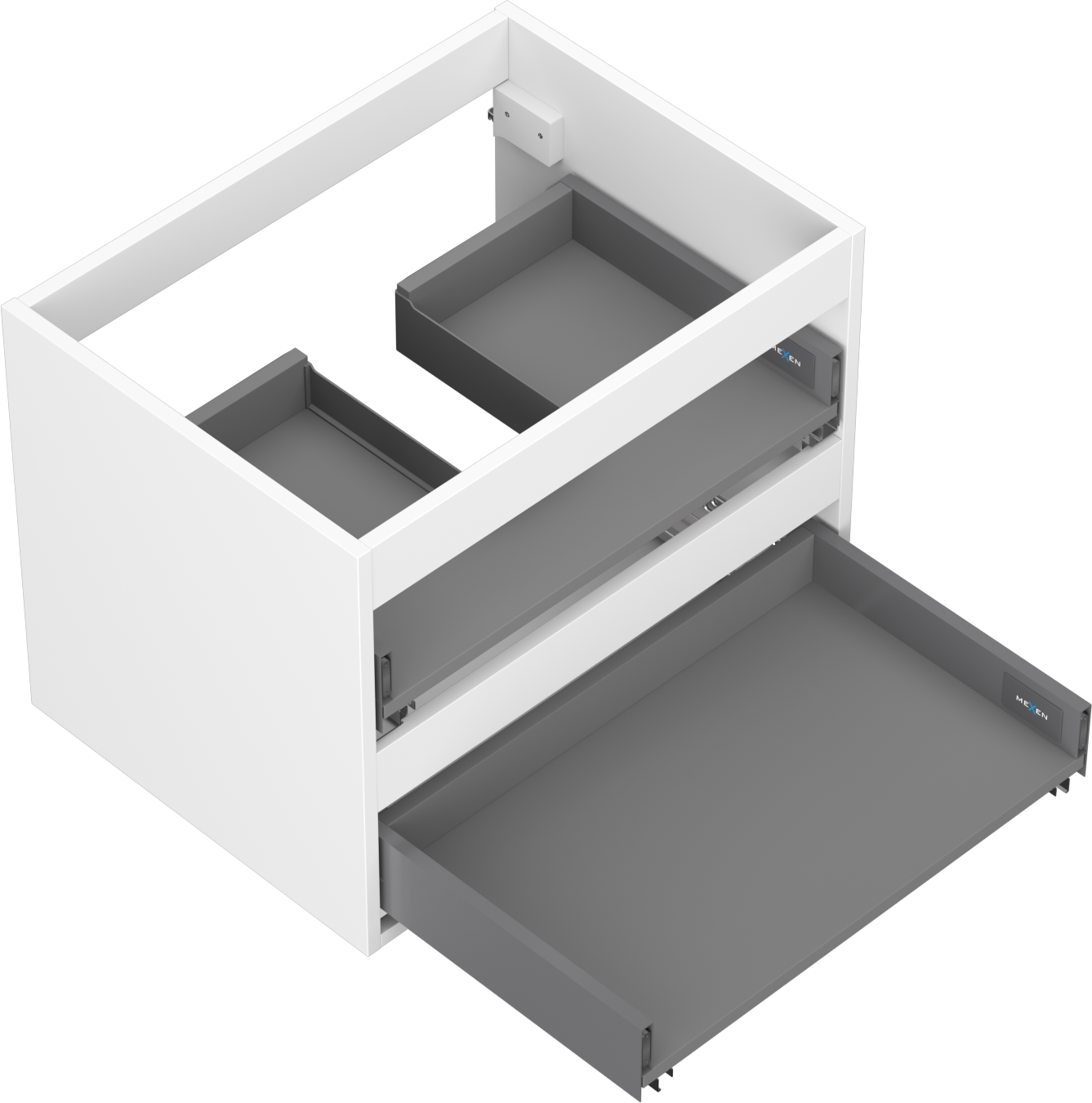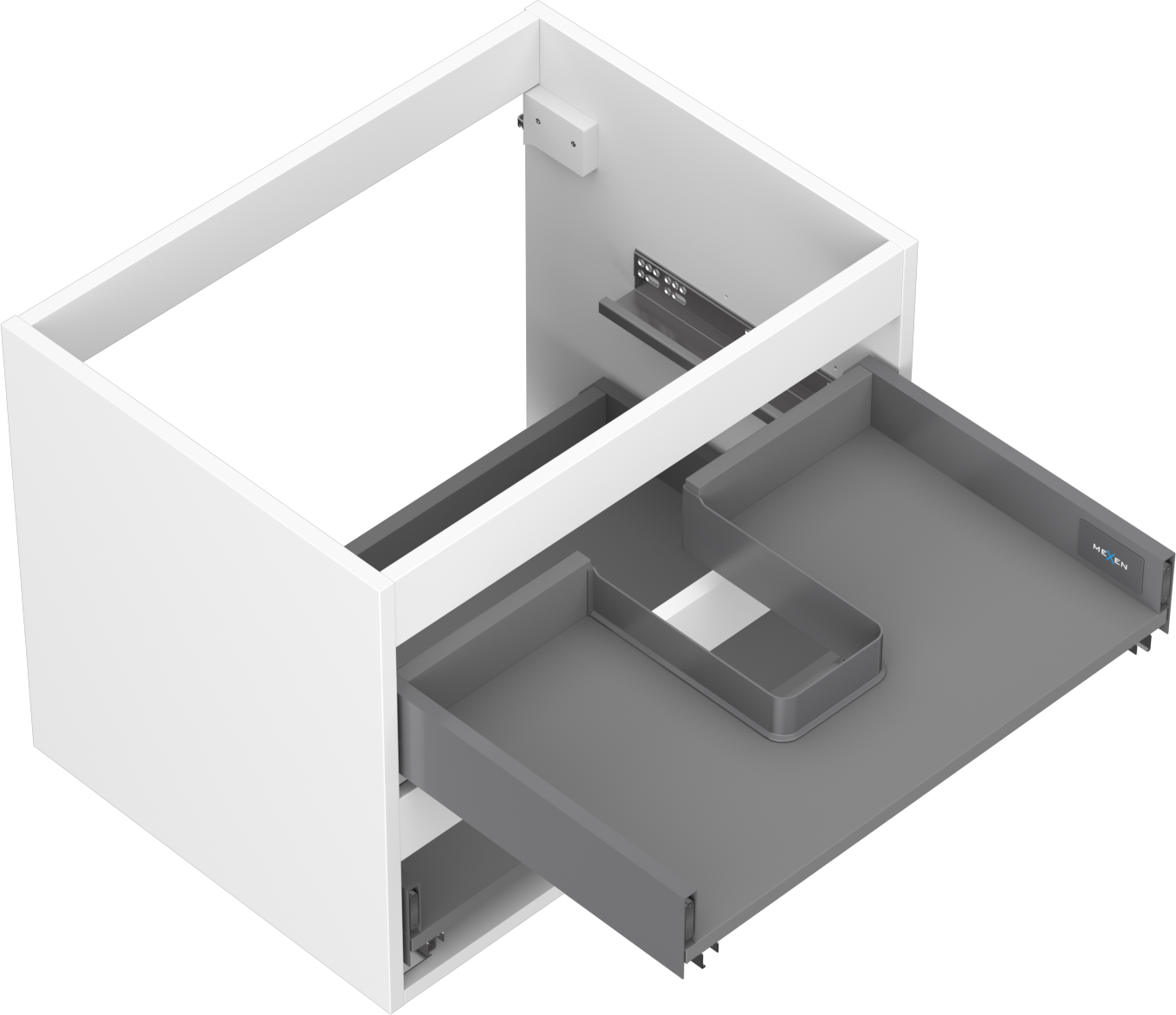 Decupajul în sertar este proiectat în așa fel încât să acomodeze sifonul, care este esențial în instalațiile de lavoare. Datorită acestui fapt, mobila poate fi montată complet funcțională, fără a fi necesară renunțarea la spațiul din sertar în favoarea instalației.