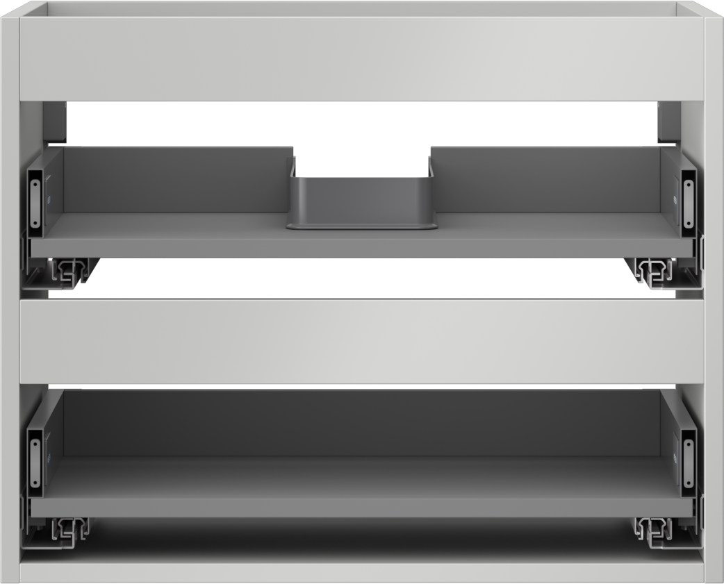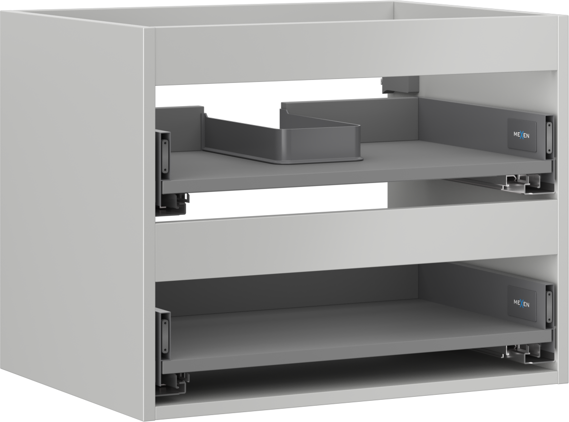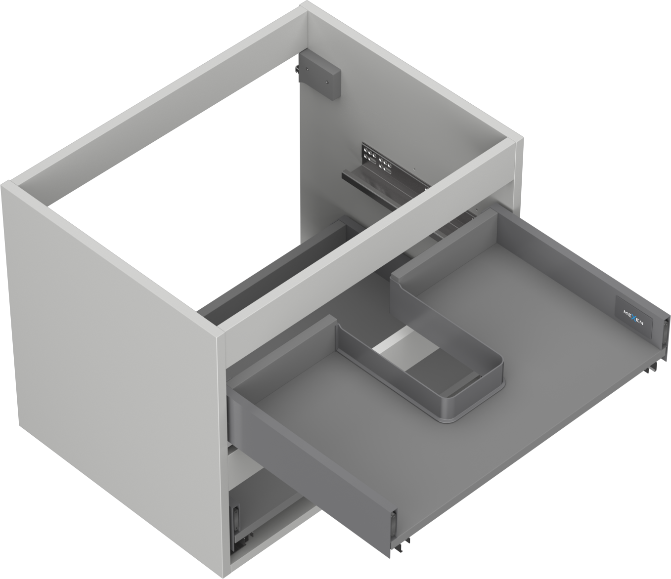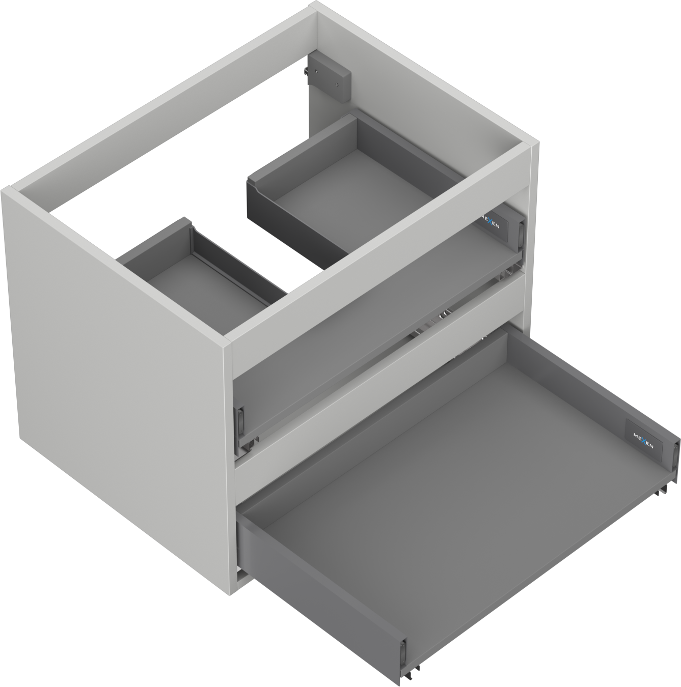 Decupajul în sertar este proiectat în așa fel încât să acomodeze sifonul, care este esențial în instalațiile de lavoare. Datorită acestui fapt, mobila poate fi montată complet funcțională, fără a fi necesară renunțarea la spațiul din sertar în favoarea instalației.