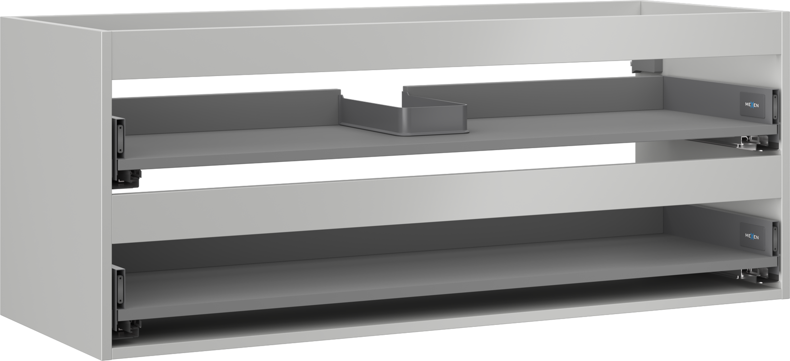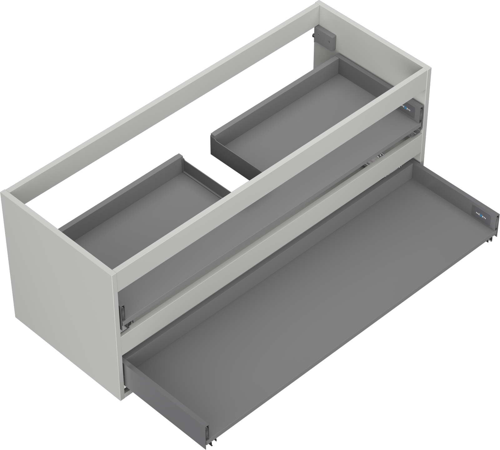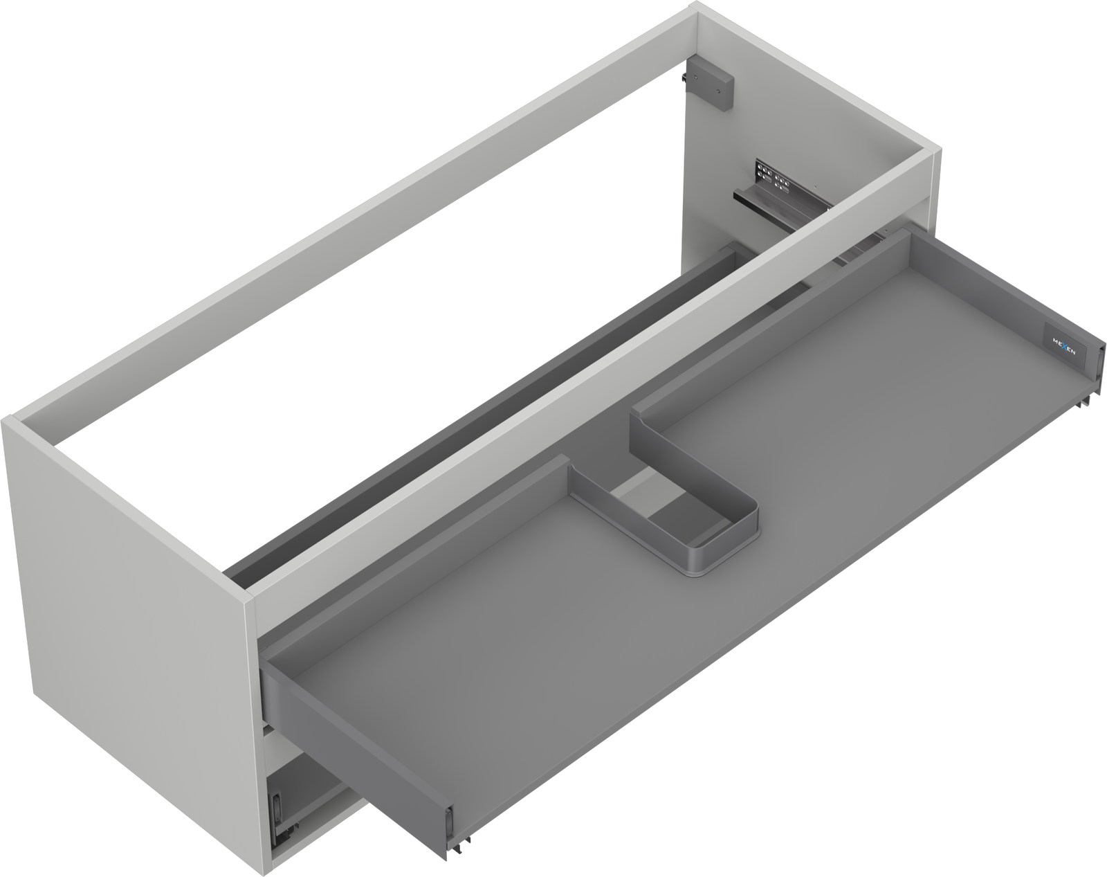 Decupajul în sertar este proiectat în așa fel încât să acomodeze sifonul, care este esențial în instalațiile de lavoare. Datorită acestui fapt, mobila poate fi montată complet funcțională, fără a fi necesară renunțarea la spațiul din sertar în favoarea instalației.