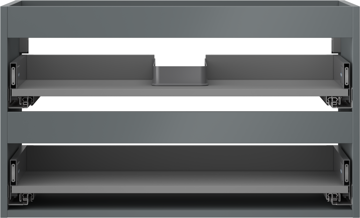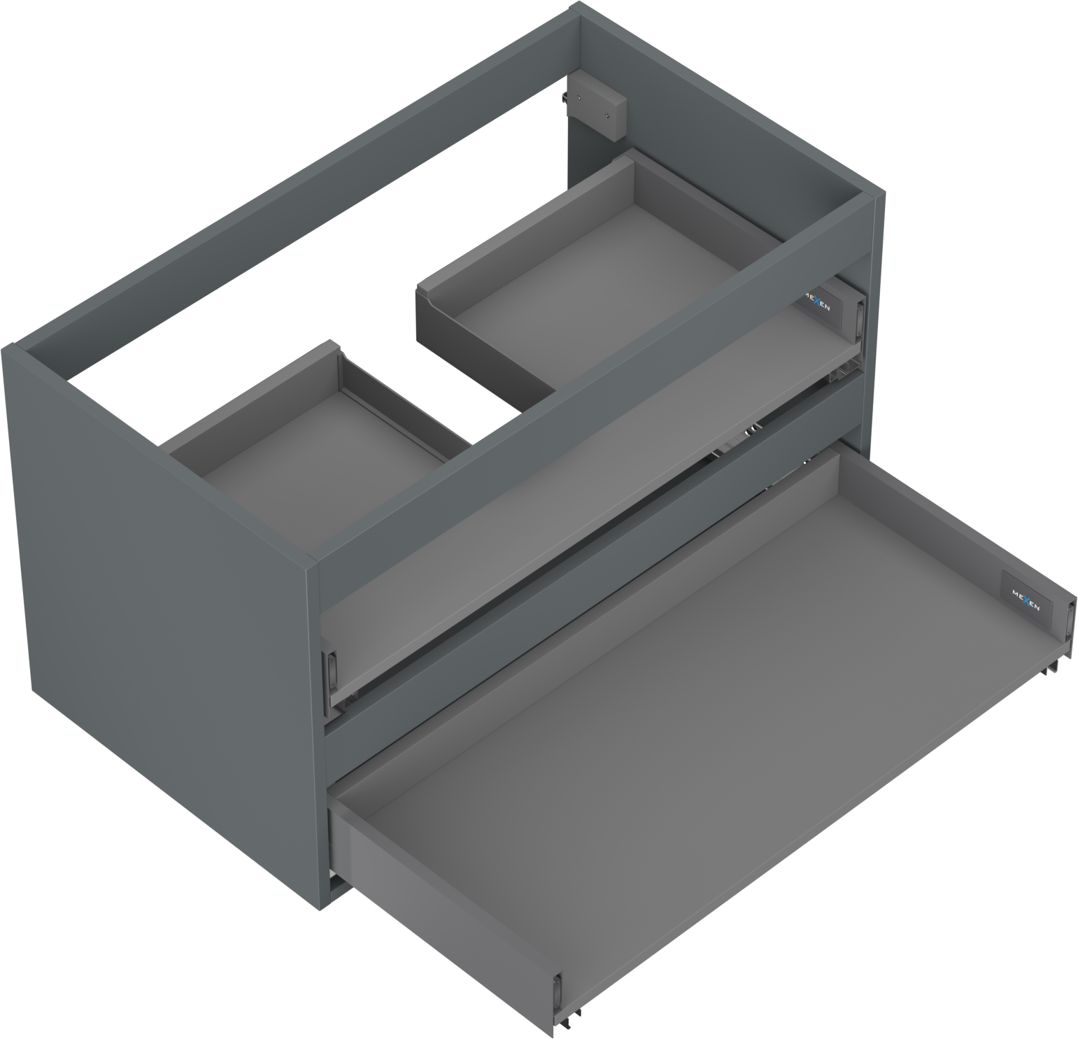 Decupajul în sertar este proiectat în așa fel încât să acomodeze sifonul, care este esențial în instalațiile de lavoare. Datorită acestui fapt, mobila poate fi montată complet funcțională, fără a fi necesară renunțarea la spațiul din sertar în favoarea instalației.