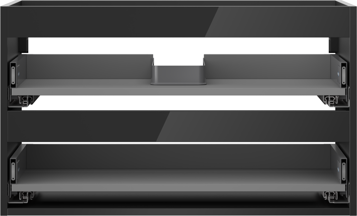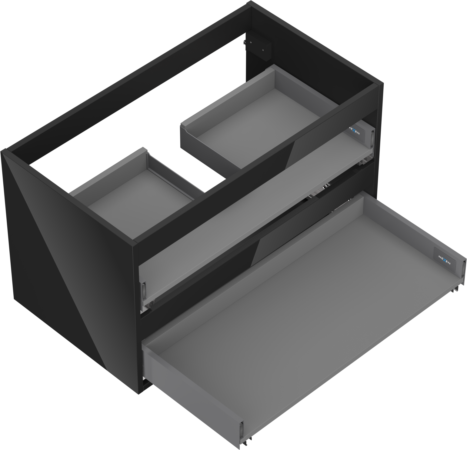 Decupajul în sertar este proiectat în așa fel încât să acomodeze sifonul, care este esențial în instalațiile de lavoare. Datorită acestui fapt, mobila poate fi montată complet funcțională, fără a fi necesară renunțarea la spațiul din sertar în favoarea instalației.