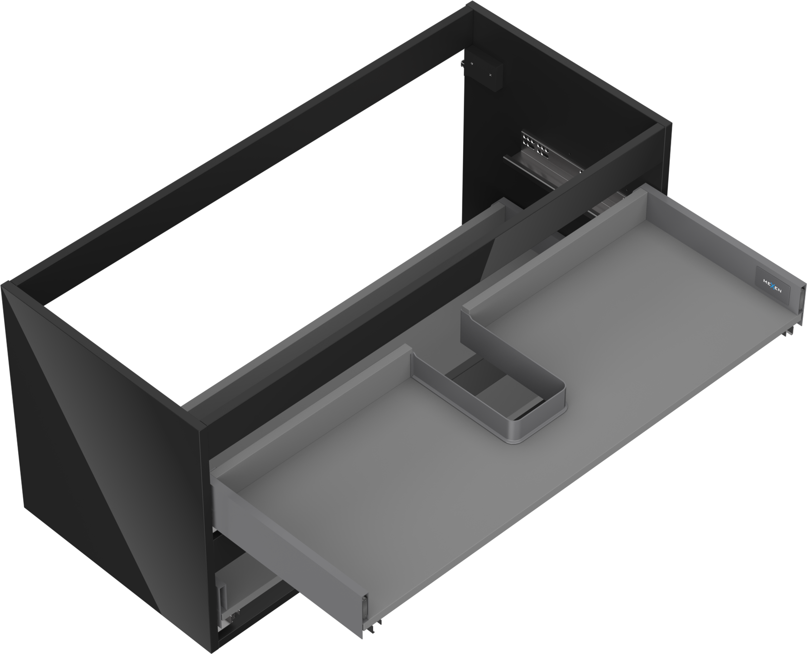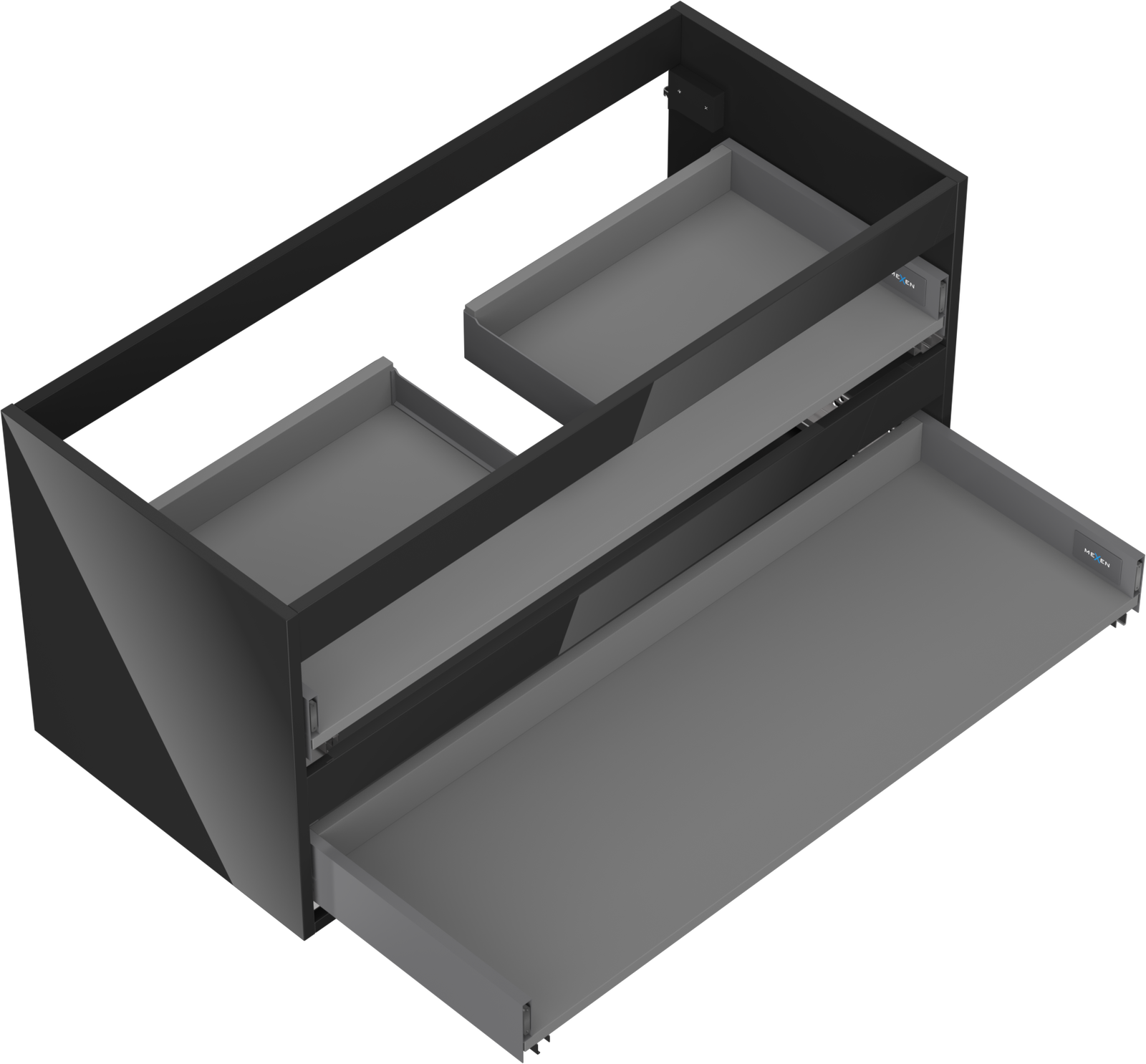 Decupajul în sertar este proiectat în așa fel încât să acomodeze sifonul, care este esențial în instalațiile de lavoare. Datorită acestui fapt, mobila poate fi montată complet funcțională, fără a fi necesară renunțarea la spațiul din sertar în favoarea instalației.