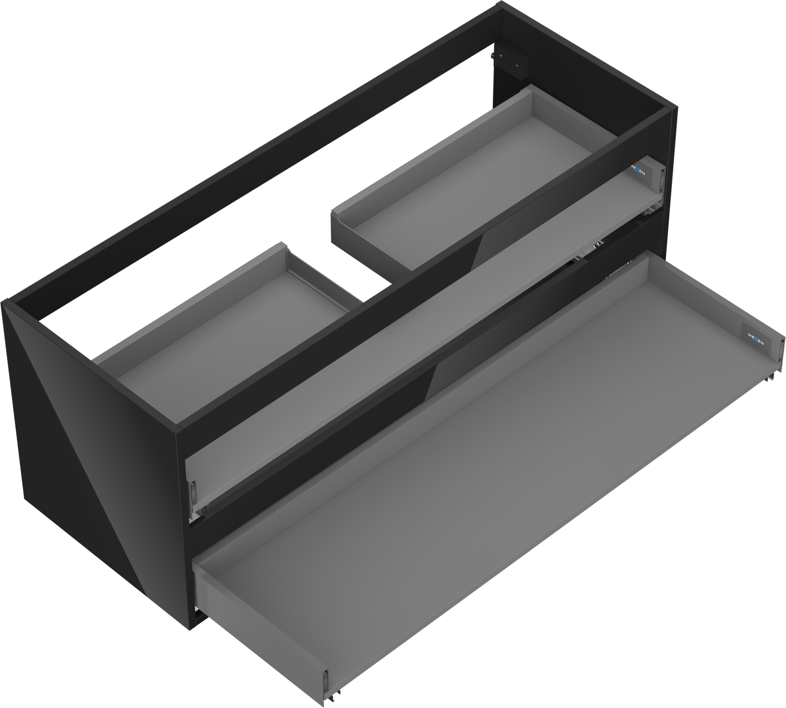 Decupajul în sertar este proiectat în așa fel încât să acomodeze sifonul, care este esențial în instalațiile de lavoare. Datorită acestui fapt, mobila poate fi montată complet funcțională, fără a fi necesară renunțarea la spațiul din sertar în favoarea instalației.