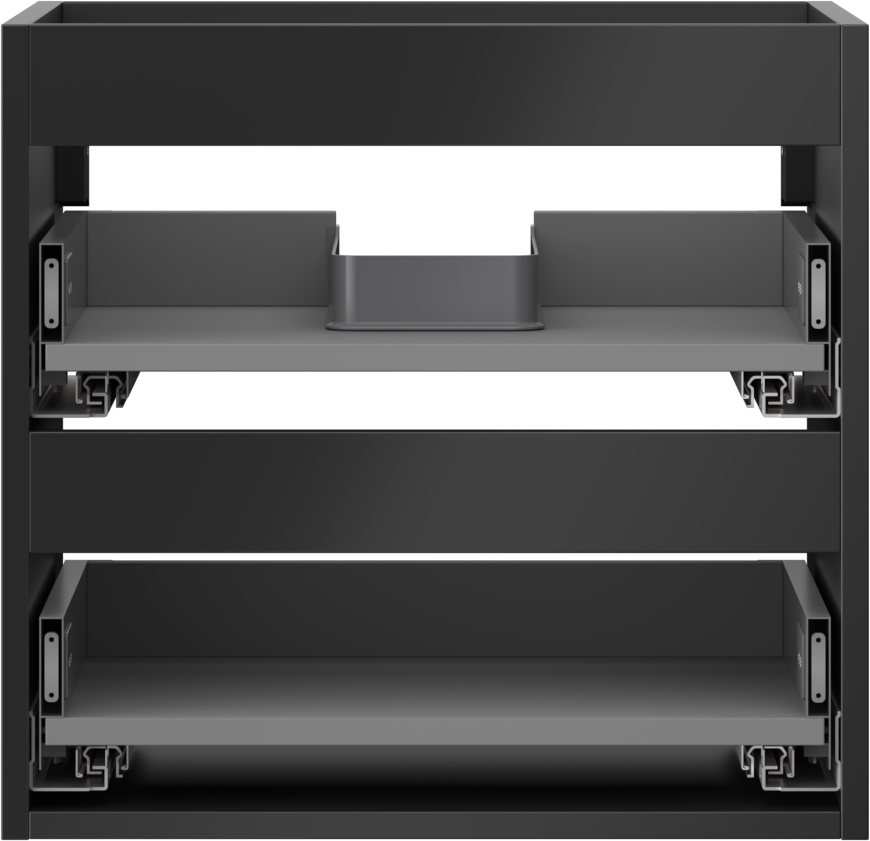 Decupajul în sertar este proiectat în așa fel încât să acomodeze sifonul, care este esențial în instalațiile de lavoare. Datorită acestui fapt, mobila poate fi montată complet funcțională, fără a fi necesară renunțarea la spațiul din sertar în favoarea instalației.