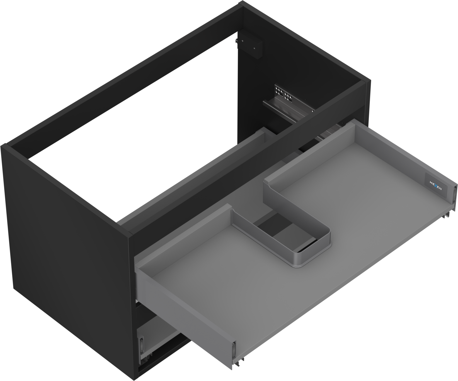 Decupajul în sertar este proiectat în așa fel încât să acomodeze sifonul, care este esențial în instalațiile de lavoare. Datorită acestui fapt, mobila poate fi montată complet funcțională, fără a fi necesară renunțarea la spațiul din sertar în favoarea instalației.