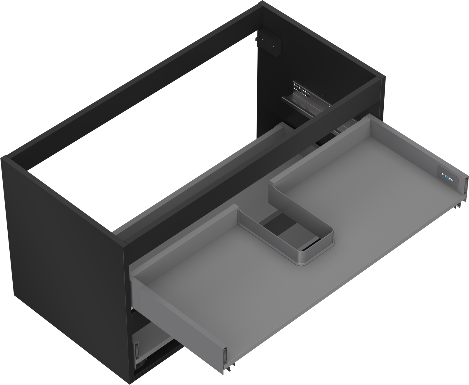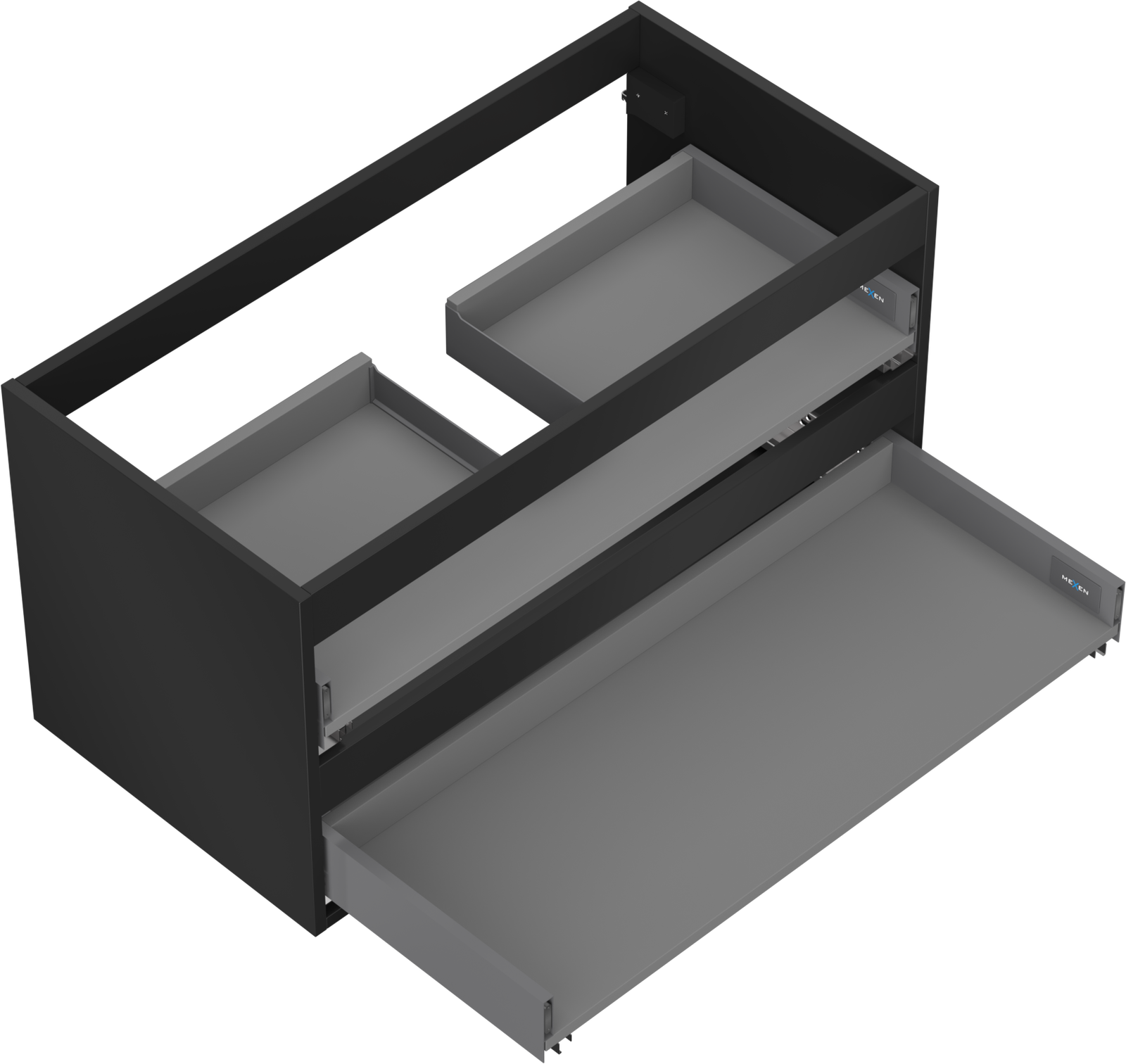 Decupajul în sertar este proiectat în așa fel încât să acomodeze sifonul, care este esențial în instalațiile de lavoare. Datorită acestui fapt, mobila poate fi montată complet funcțională, fără a fi necesară renunțarea la spațiul din sertar în favoarea instalației.