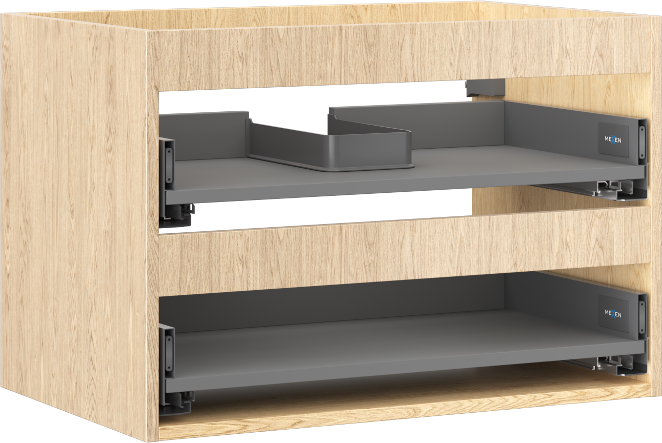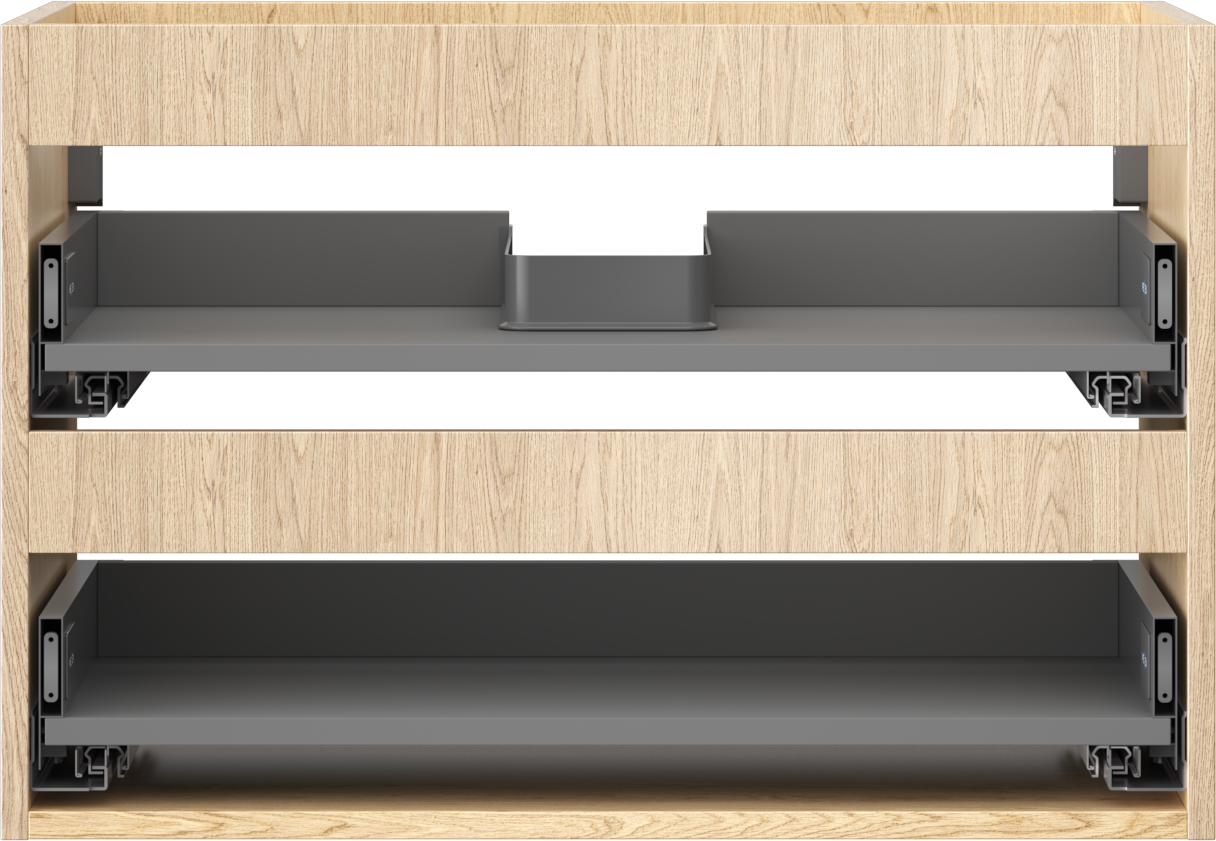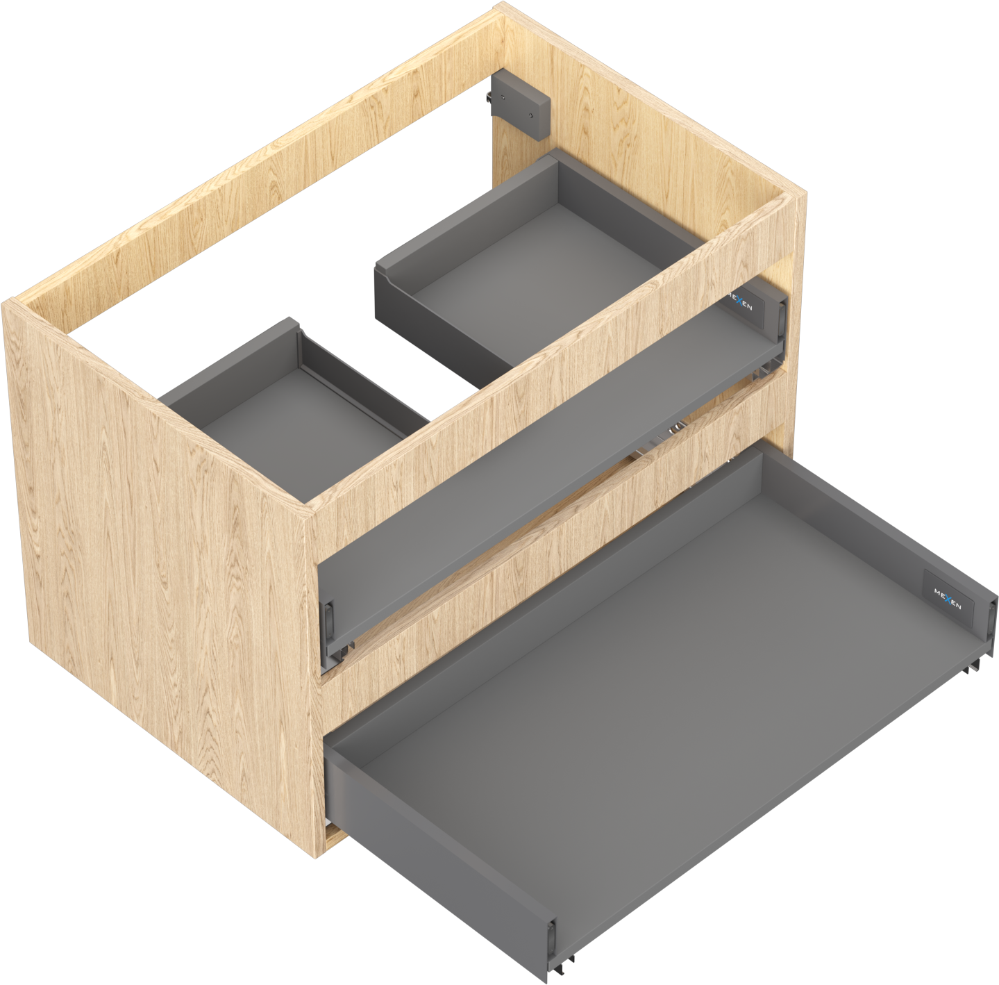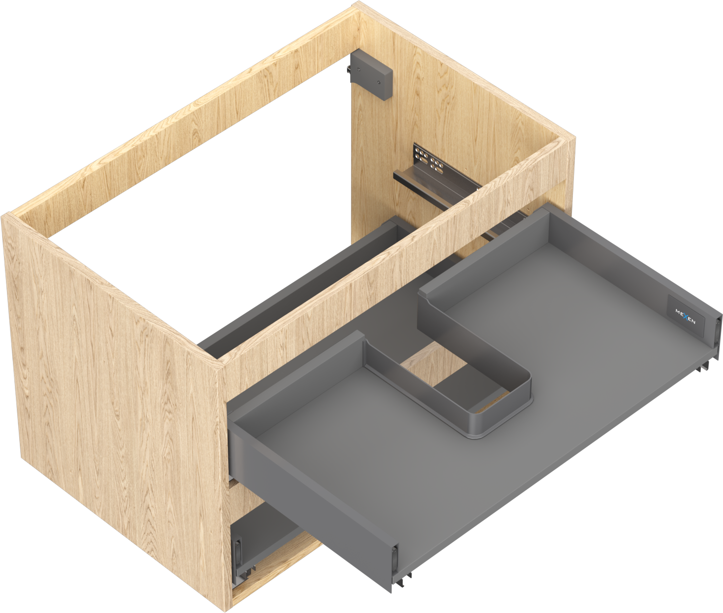 Decupajul în sertar este proiectat în așa fel încât să acomodeze sifonul, care este esențial în instalațiile de lavoare. Datorită acestui fapt, mobila poate fi montată complet funcțională, fără a fi necesară renunțarea la spațiul din sertar în favoarea instalației.
