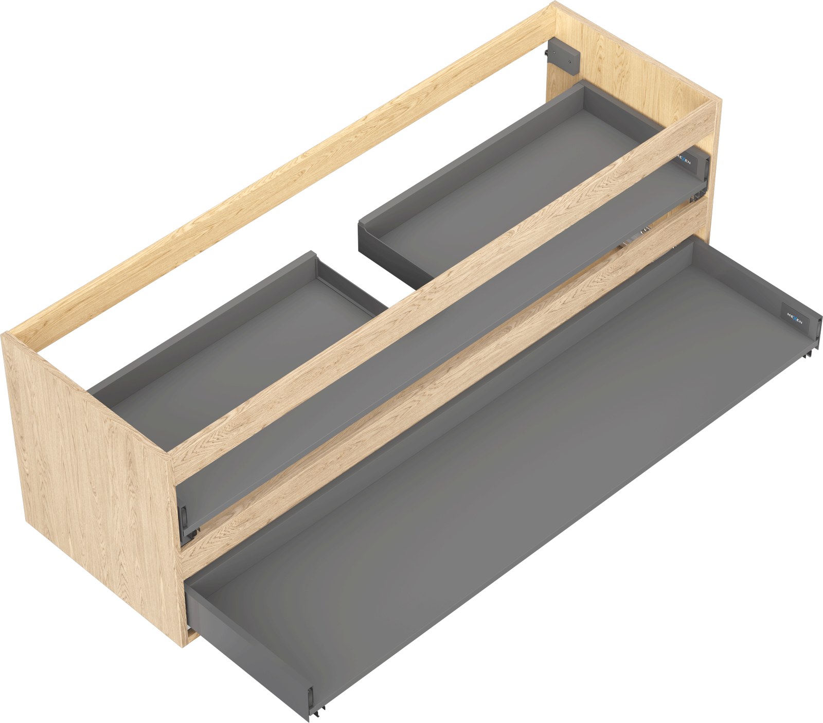 Decupajul în sertar este proiectat în așa fel încât să acomodeze sifonul, care este esențial în instalațiile de lavoare. Datorită acestui fapt, mobila poate fi montată complet funcțională, fără a fi necesară renunțarea la spațiul din sertar în favoarea instalației.
