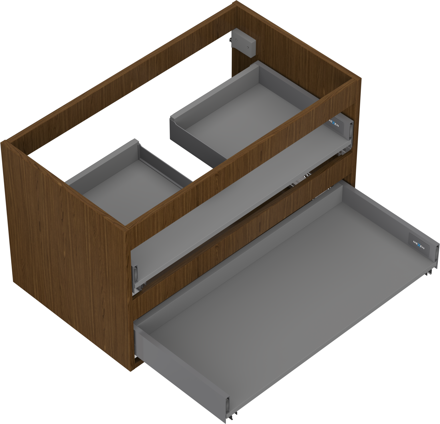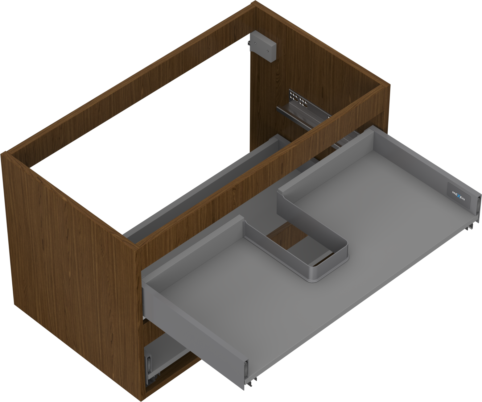 Decupajul în sertar este proiectat în așa fel încât să acomodeze sifonul, care este esențial în instalațiile de lavoare. Datorită acestui fapt, mobila poate fi montată complet funcțională, fără a fi necesară renunțarea la spațiul din sertar în favoarea instalației.