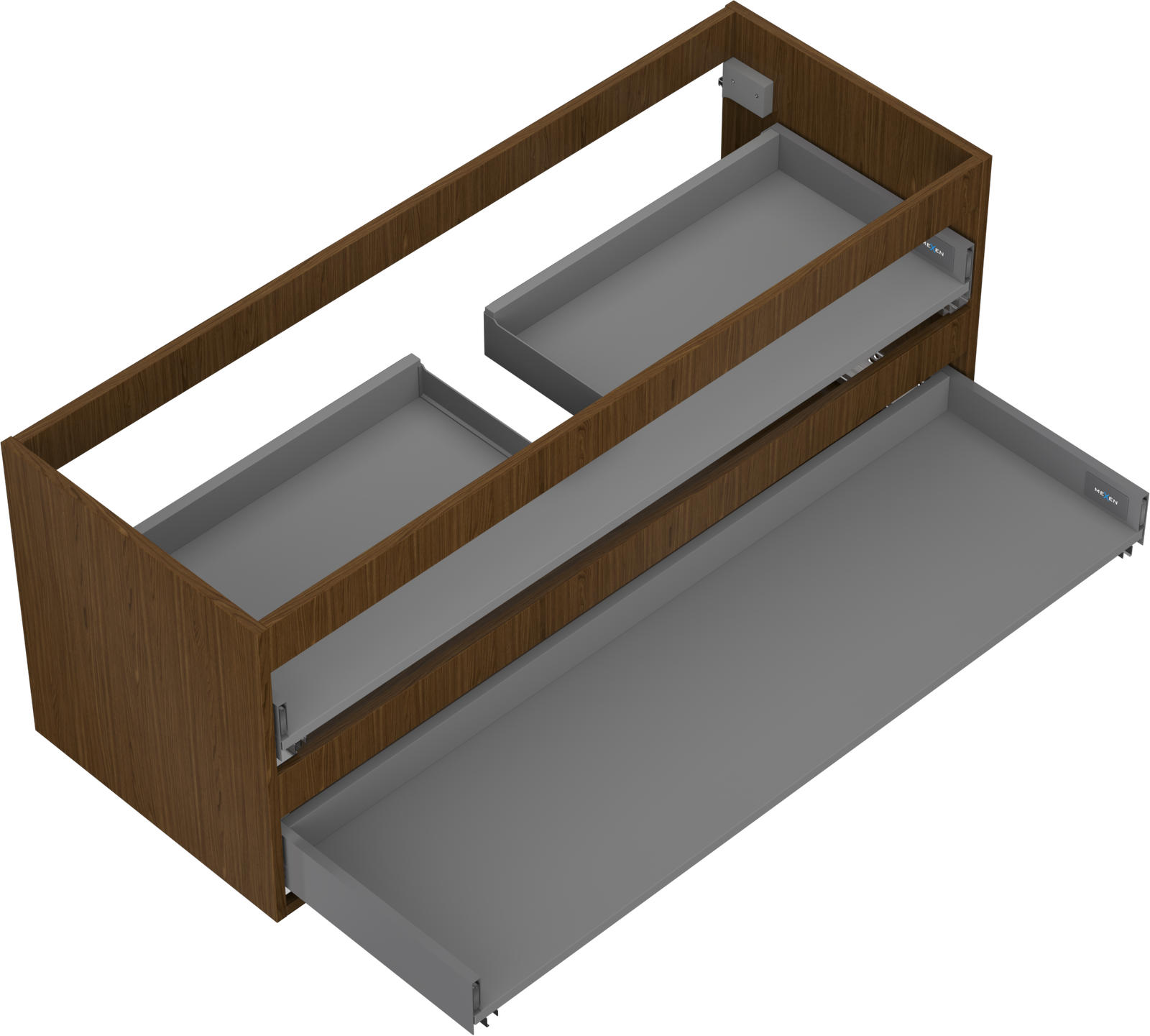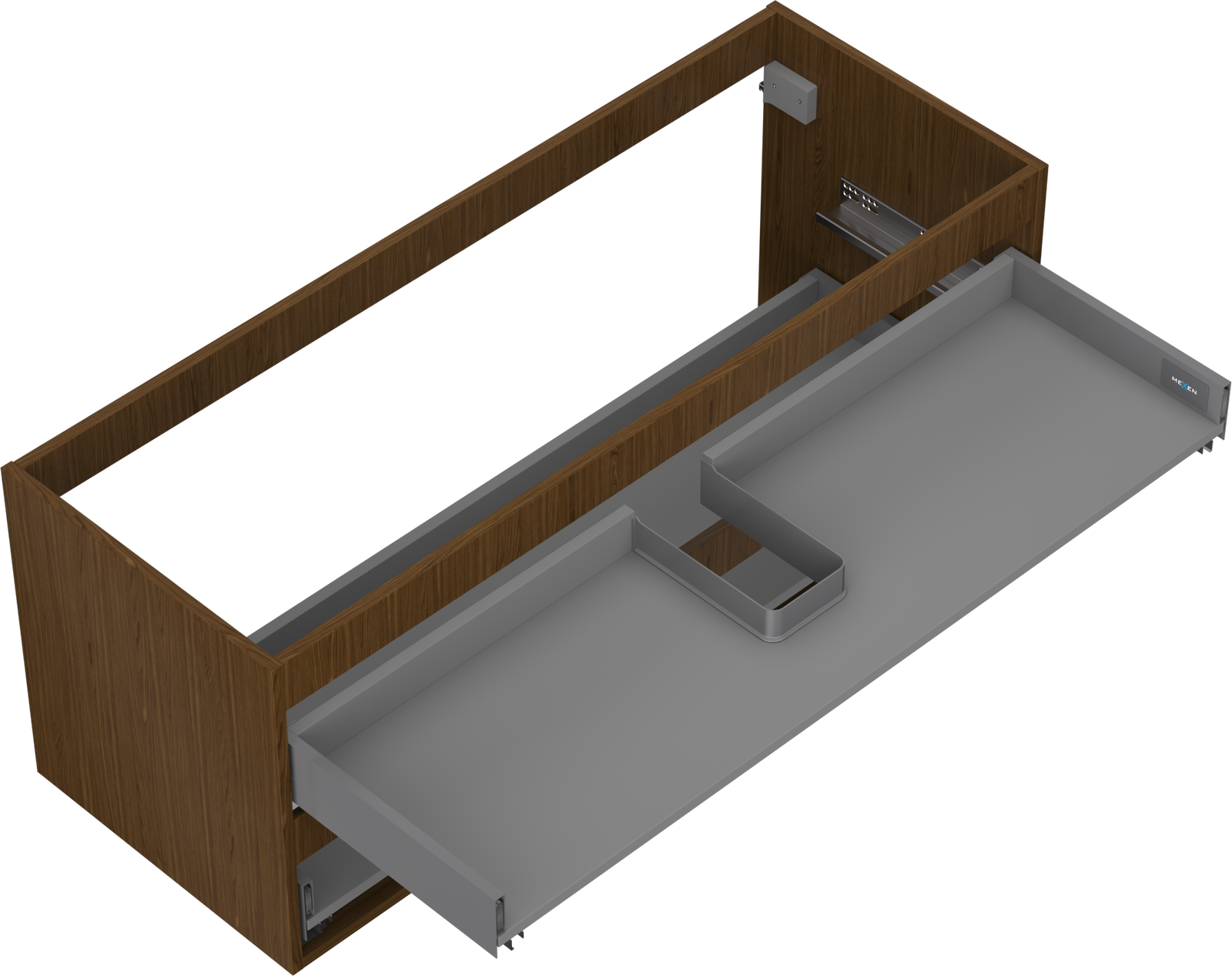 Decupajul în sertar este proiectat în așa fel încât să acomodeze sifonul, care este esențial în instalațiile de lavoare. Datorită acestui fapt, mobila poate fi montată complet funcțională, fără a fi necesară renunțarea la spațiul din sertar în favoarea instalației.