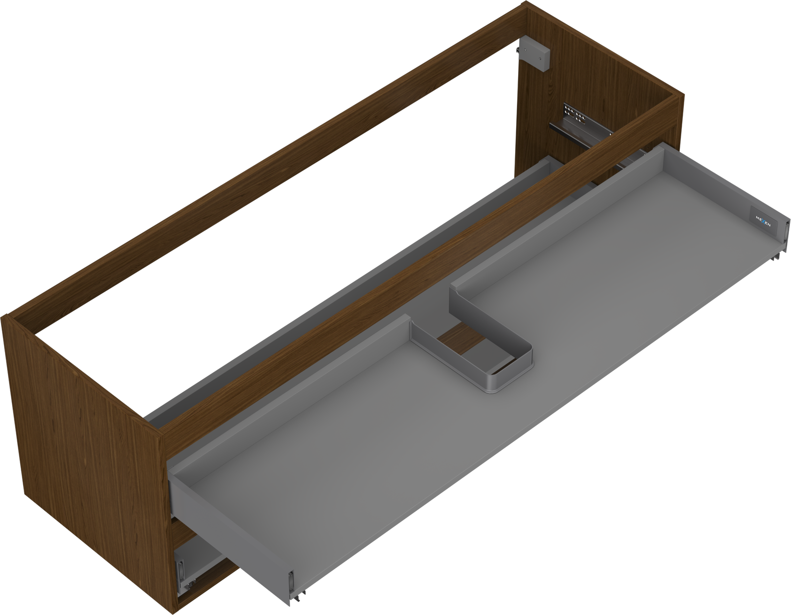 Decupajul în sertar este proiectat în așa fel încât să acomodeze sifonul, care este esențial în instalațiile de lavoare. Datorită acestui fapt, mobila poate fi montată complet funcțională, fără a fi necesară renunțarea la spațiul din sertar în favoarea instalației.