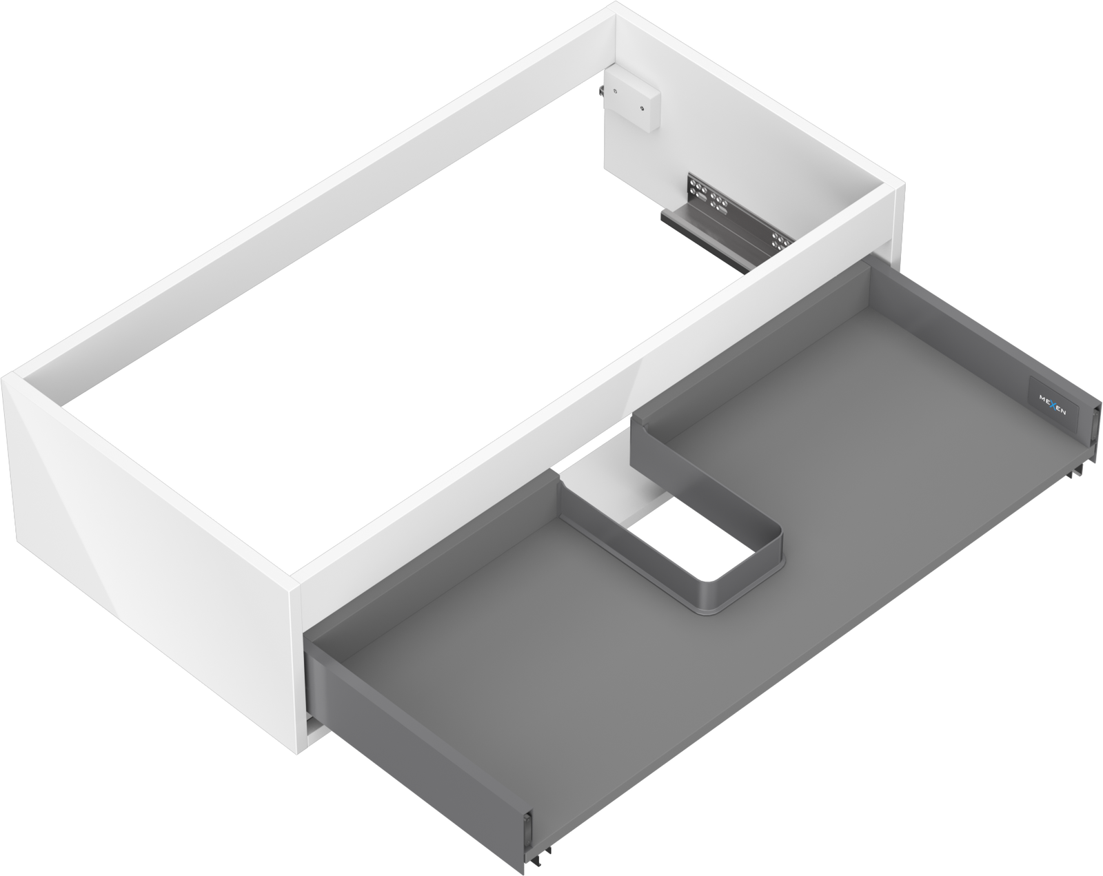 Decupajul în sertar este proiectat în așa fel încât să acomodeze sifonul, care este esențial în instalațiile de lavoare. Datorită acestui fapt, mobila poate fi montată complet funcțională, fără a fi necesară renunțarea la spațiul din sertar în favoarea instalației.