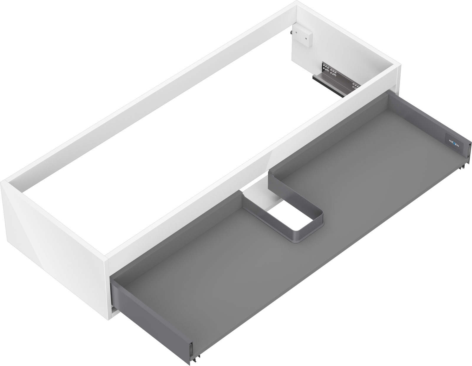 Decupajul în sertar este proiectat în așa fel încât să acomodeze sifonul, care este esențial în instalațiile de lavoare. Datorită acestui fapt, mobila poate fi montată complet funcțională, fără a fi necesară renunțarea la spațiul din sertar în favoarea instalației.