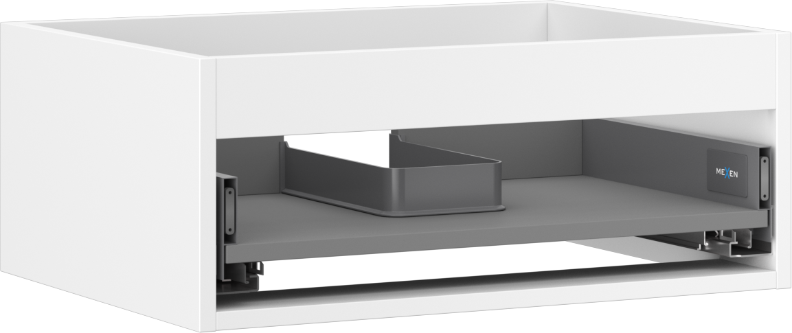 Decupajul în sertar este proiectat în așa fel încât să acomodeze sifonul, care este esențial în instalațiile de lavoare. Datorită acestui fapt, mobila poate fi montată complet funcțională, fără a fi necesară renunțarea la spațiul din sertar în favoarea instalației.
