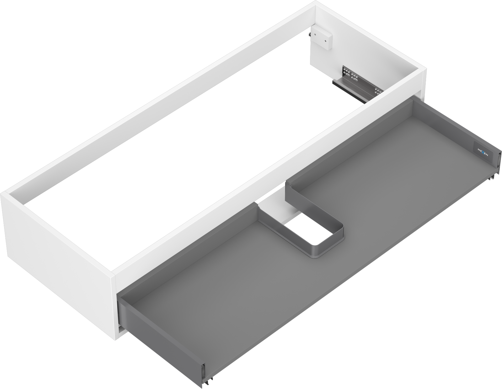 Decupajul în sertar este proiectat în așa fel încât să acomodeze sifonul, care este esențial în instalațiile de lavoare. Datorită acestui fapt, mobila poate fi montată complet funcțională, fără a fi necesară renunțarea la spațiul din sertar în favoarea instalației.