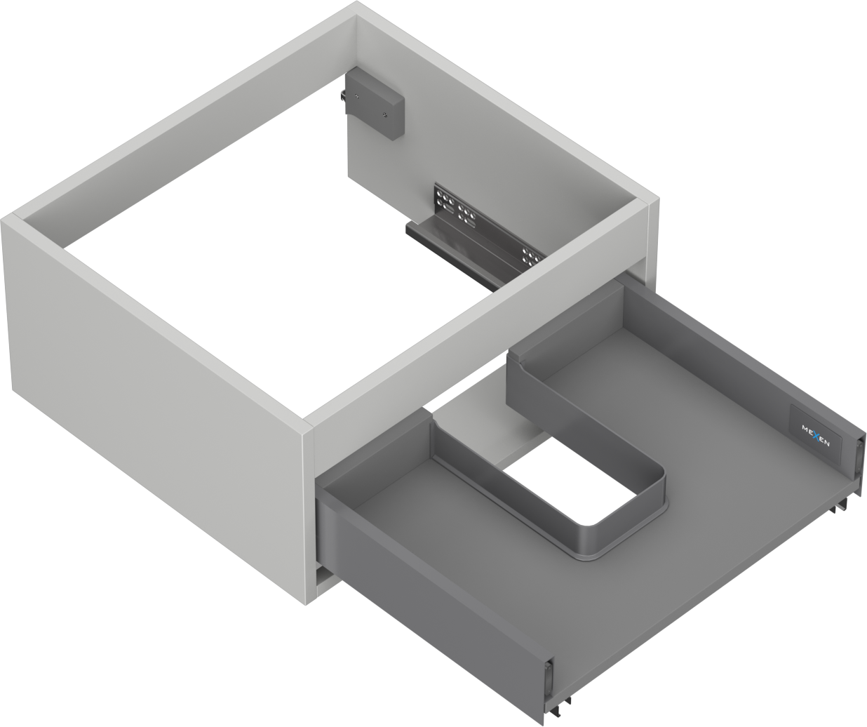 Decupajul în sertar este proiectat în așa fel încât să acomodeze sifonul, care este esențial în instalațiile de lavoare. Datorită acestui fapt, mobila poate fi montată complet funcțională, fără a fi necesară renunțarea la spațiul din sertar în favoarea instalației.