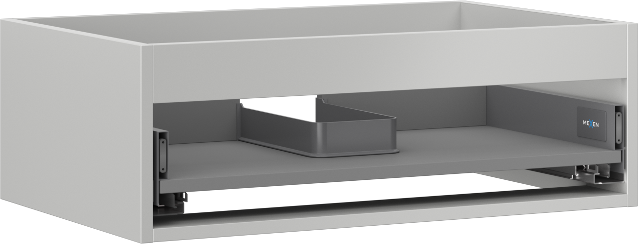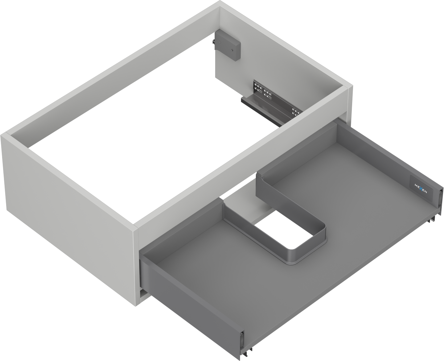 Decupajul în sertar este proiectat în așa fel încât să acomodeze sifonul, care este esențial în instalațiile de lavoare. Datorită acestui fapt, mobila poate fi montată complet funcțională, fără a fi necesară renunțarea la spațiul din sertar în favoarea instalației.