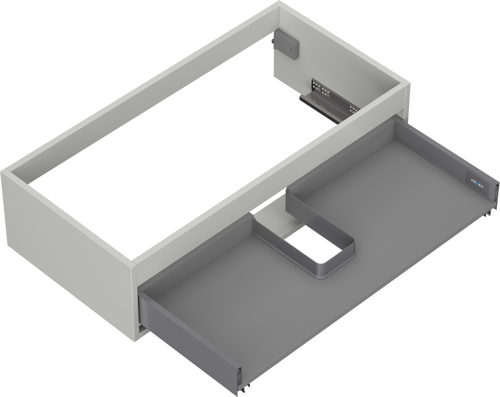 Decupajul în sertar este proiectat în așa fel încât să acomodeze sifonul, care este esențial în instalațiile de lavoare. Datorită acestui fapt, mobila poate fi montată complet funcțională, fără a fi necesară renunțarea la spațiul din sertar în favoarea instalației.
