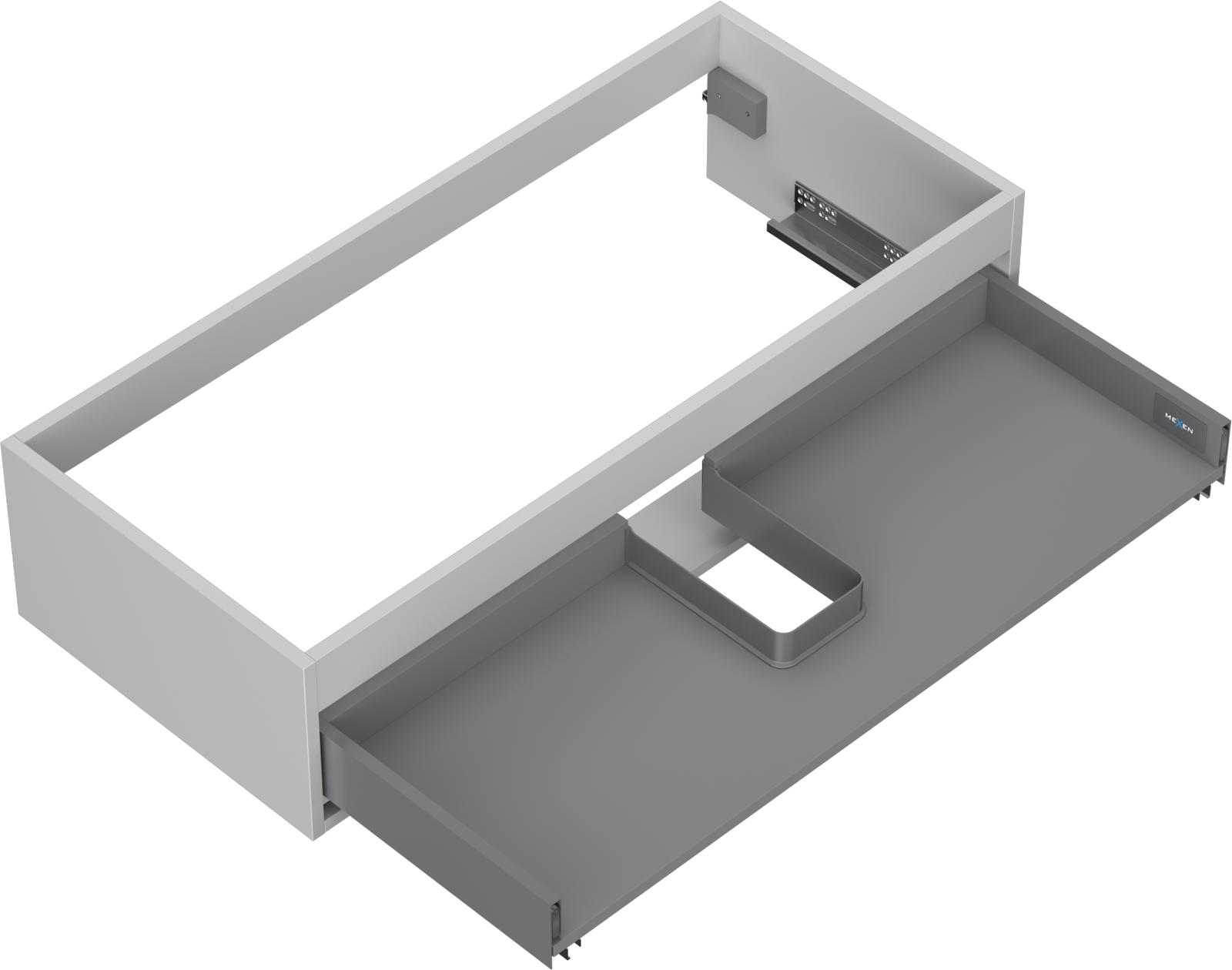 Decupajul în sertar este proiectat în așa fel încât să acomodeze sifonul, care este esențial în instalațiile de lavoare. Datorită acestui fapt, mobila poate fi montată complet funcțională, fără a fi necesară renunțarea la spațiul din sertar în favoarea instalației.