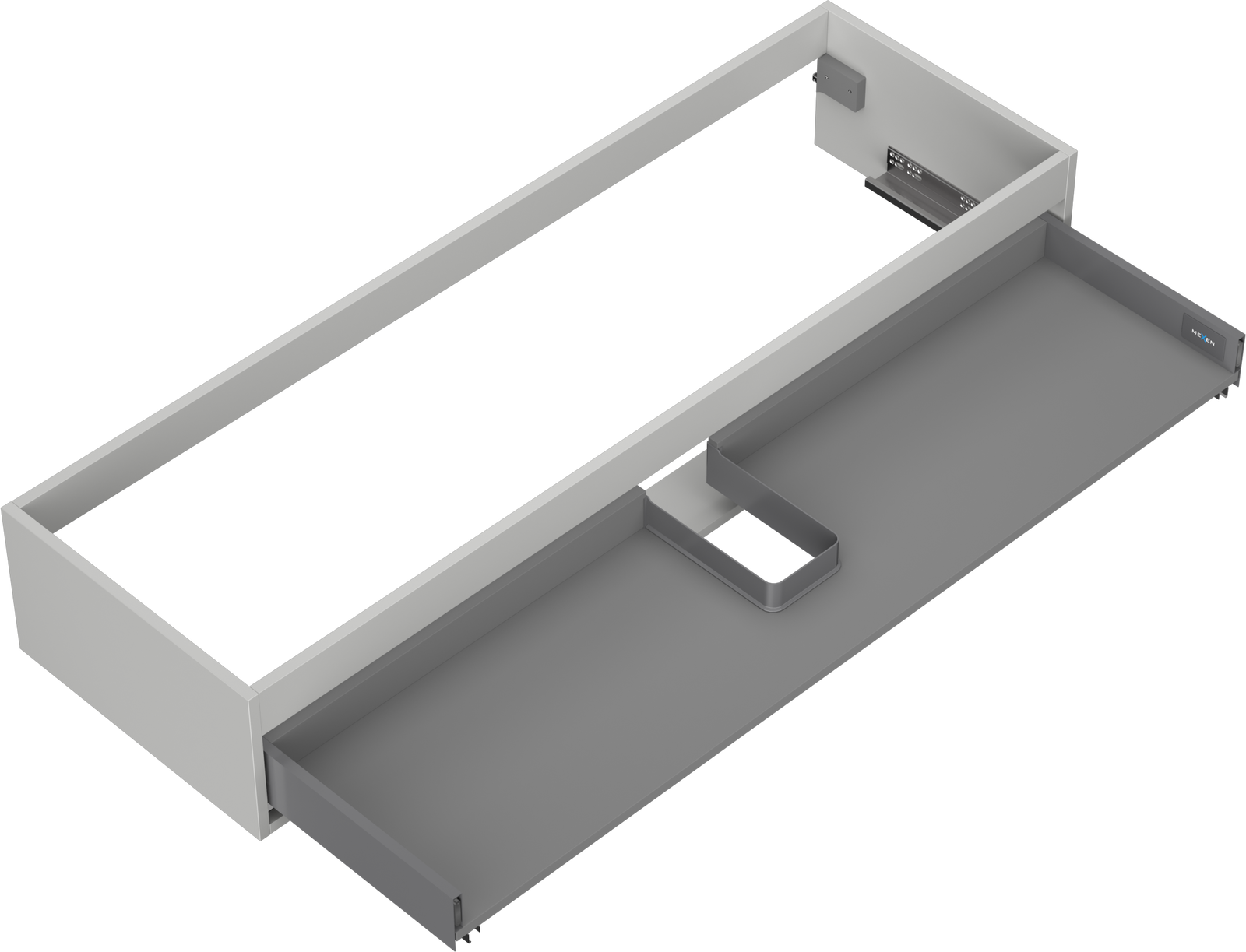 Decupajul în sertar este proiectat în așa fel încât să acomodeze sifonul, care este esențial în instalațiile de lavoare. Datorită acestui fapt, mobila poate fi montată complet funcțională, fără a fi necesară renunțarea la spațiul din sertar în favoarea instalației.