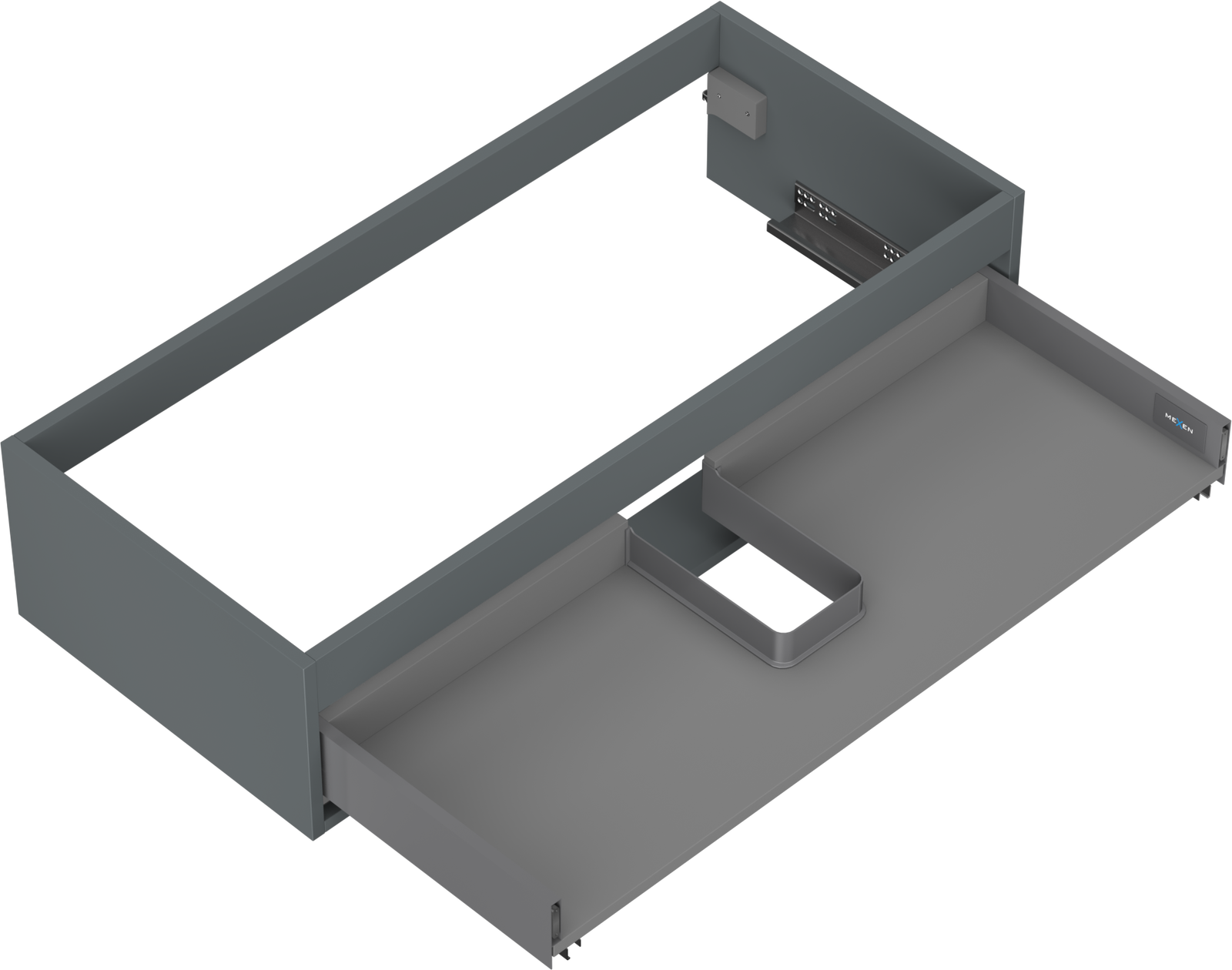 Decupajul în sertar este proiectat în așa fel încât să acomodeze sifonul, care este esențial în instalațiile de lavoare. Datorită acestui fapt, mobila poate fi montată complet funcțională, fără a fi necesară renunțarea la spațiul din sertar în favoarea instalației.