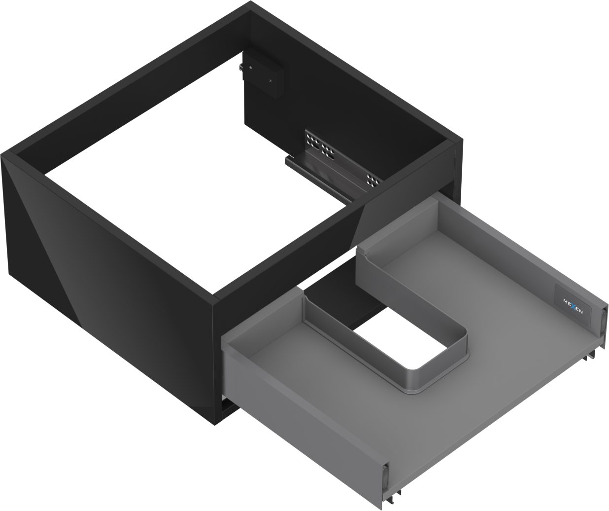 Decupajul în sertar este proiectat în așa fel încât să acomodeze sifonul, care este esențial în instalațiile de lavoare. Datorită acestui fapt, mobila poate fi montată complet funcțională, fără a fi necesară renunțarea la spațiul din sertar în favoarea instalației.