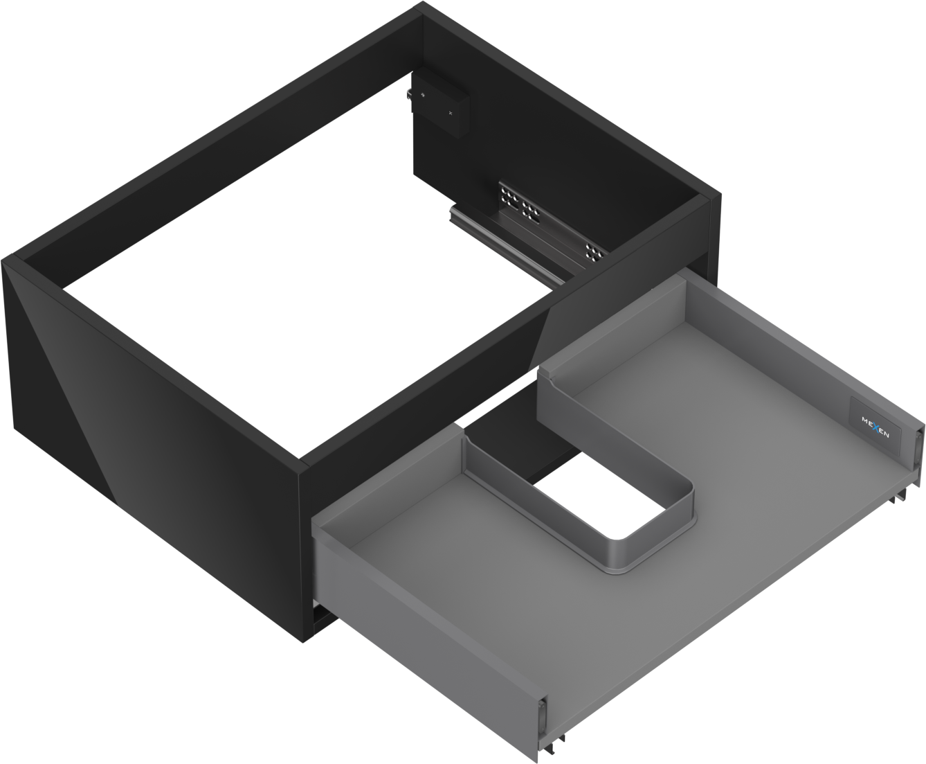 Decupajul în sertar este proiectat în așa fel încât să acomodeze sifonul, care este esențial în instalațiile de lavoare. Datorită acestui fapt, mobila poate fi montată complet funcțională, fără a fi necesară renunțarea la spațiul din sertar în favoarea instalației.