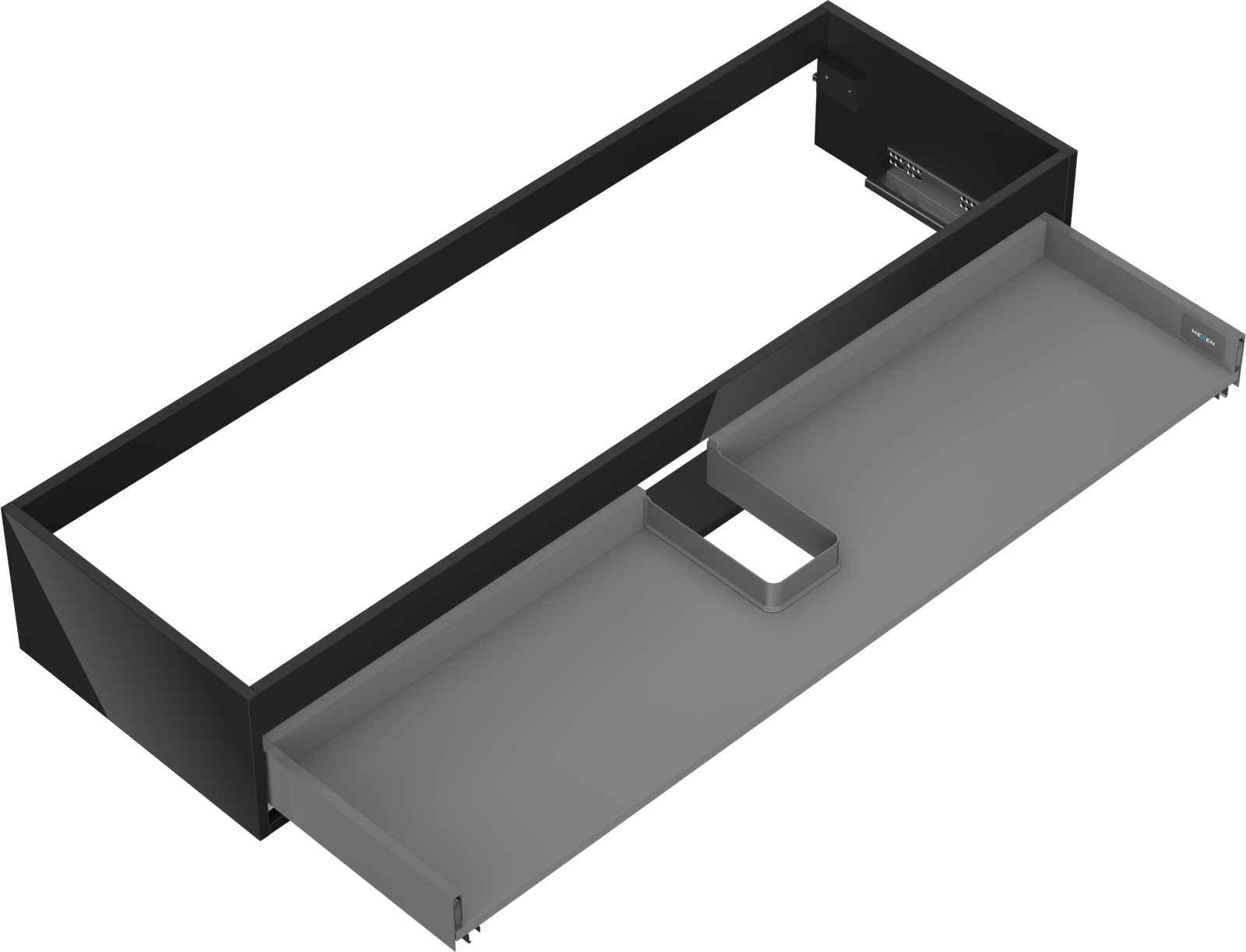 Decupajul în sertar este proiectat în așa fel încât să acomodeze sifonul, care este esențial în instalațiile de lavoare. Datorită acestui fapt, mobila poate fi montată complet funcțională, fără a fi necesară renunțarea la spațiul din sertar în favoarea instalației.