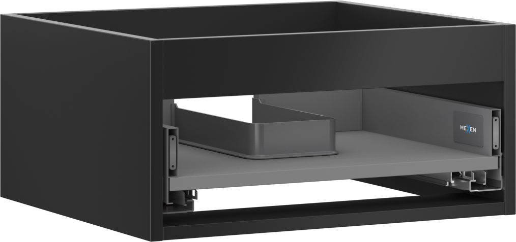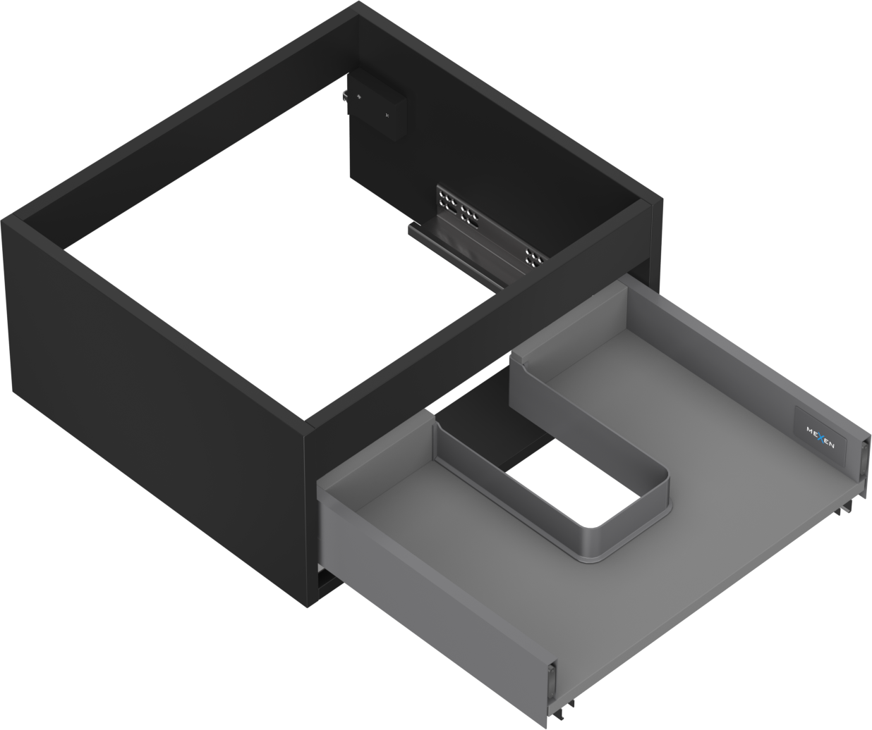 Decupajul în sertar este proiectat în așa fel încât să acomodeze sifonul, care este esențial în instalațiile de lavoare. Datorită acestui fapt, mobila poate fi montată complet funcțională, fără a fi necesară renunțarea la spațiul din sertar în favoarea instalației.
