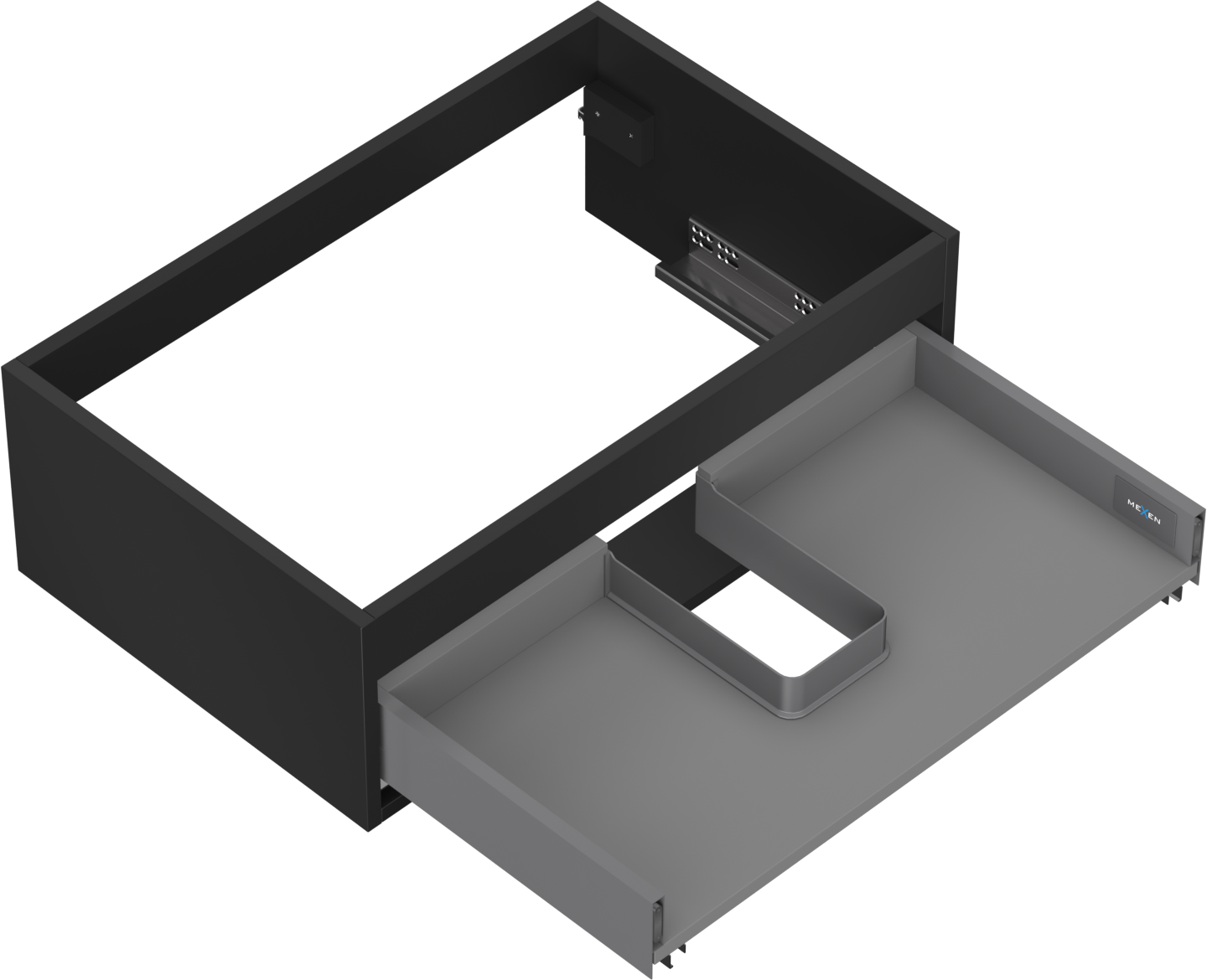 Decupajul în sertar este proiectat în așa fel încât să acomodeze sifonul, care este esențial în instalațiile de lavoare. Datorită acestui fapt, mobila poate fi montată complet funcțională, fără a fi necesară renunțarea la spațiul din sertar în favoarea instalației.